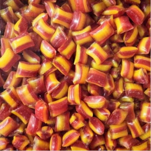 Карамель леденцовая MELLI KARAMELLI со вкусом Клубника-банан - уникальная полосатая карамель в форме подушечек имеет двойной вкукс клубника-банан