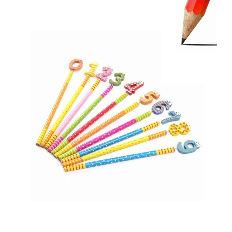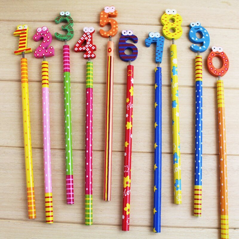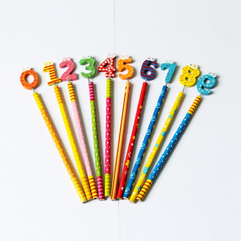 Красочные карандаши с веселыми мультяшными цифрами от 0 до 9.
