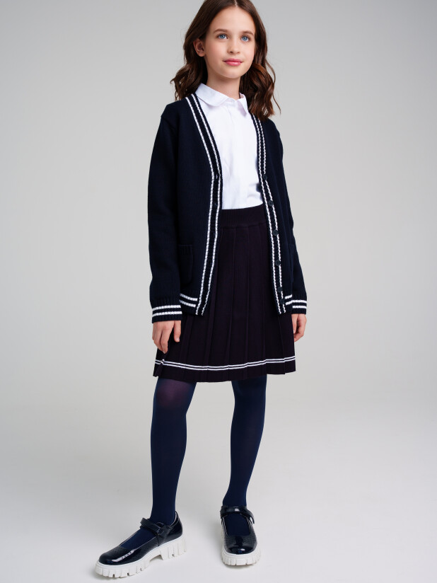 Модный синий вязаный кардиган в школу для девочки от PlayToday — это гармония стиля, уюта и практичности для каждого школьного дня!