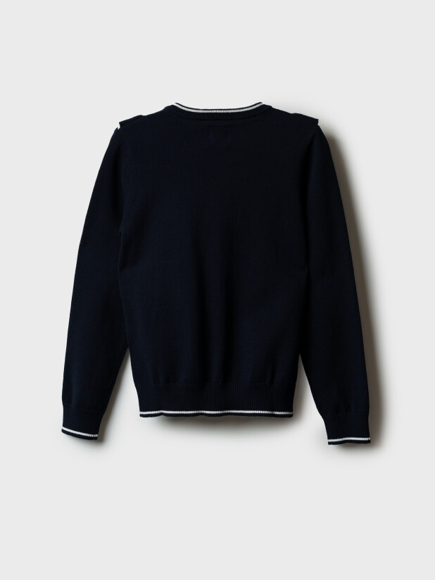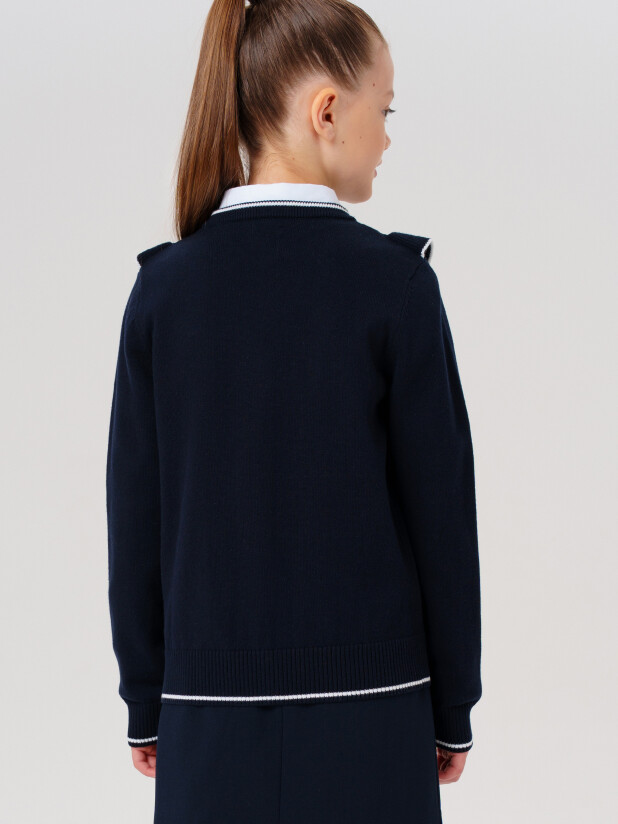 Модный темно-синий вязаный кардиган в школу для девочки от PlayToday — это баланс нежности, комфорта и универсальности для каждого учебного дня!