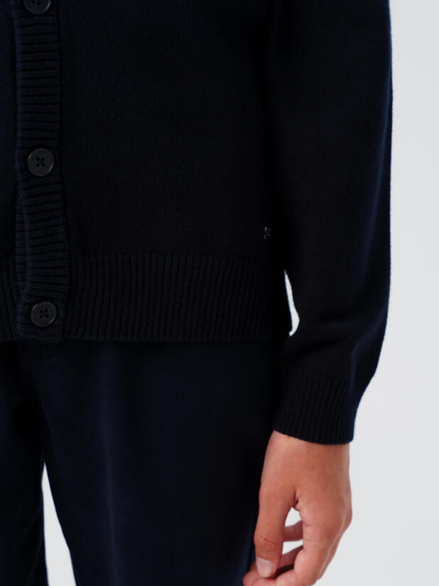 Модный темно-синий вязаный кардиган в школу для мальчика от PlayToday — идеальный баланс стиля, комфорта и практичности. Строгий, но уютный — он точно станет незаменимой частью школьного гардероба.