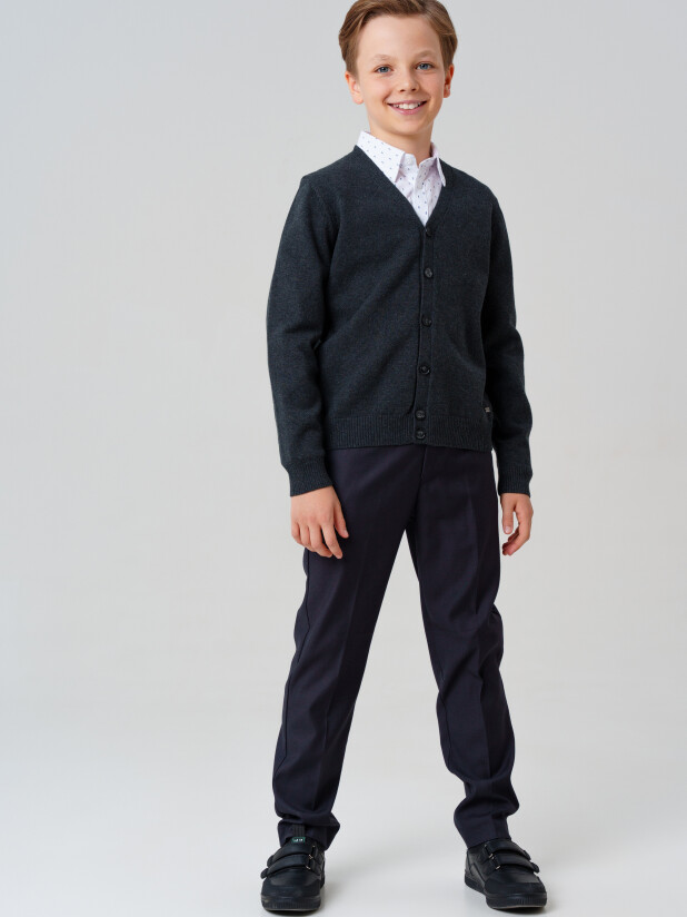 Классический серый школьный вязаный кардиган для мальчика подростка от PlayToday — стильная и универсальная кофта для школы, которая всегда актуальна. Прямой крой, лаконичный дизайн и вязаный трикотаж с высоким содержанием хлопка делают эту модель идеальной для каждого учебного дня.