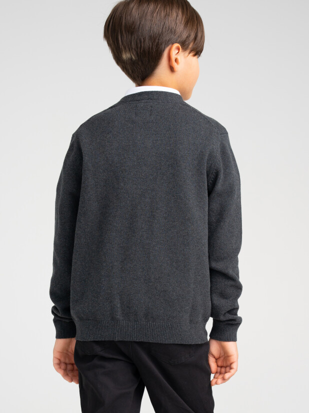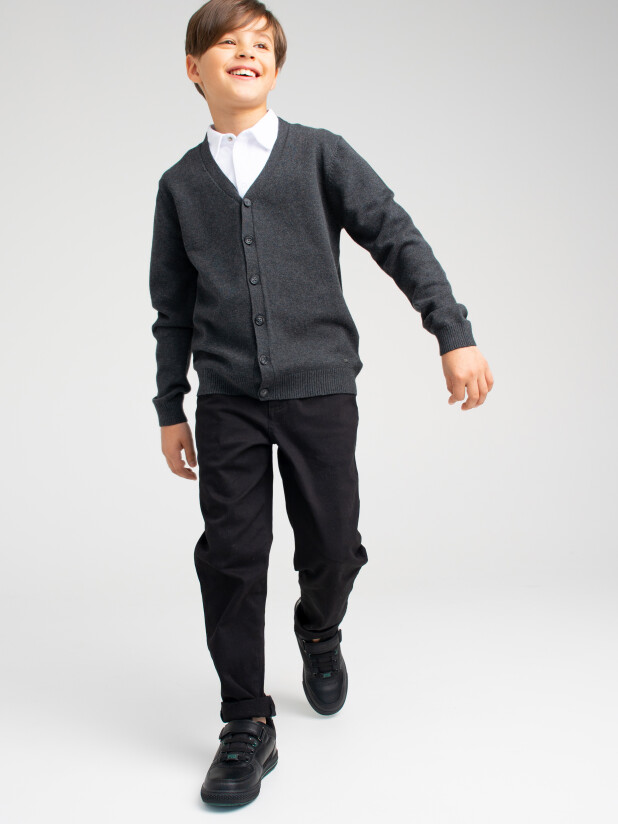 Совет по стилю: сочетайте этот универсальный детский кардиган для мальчиков с классической белой рубашкой и тёмными брюками для строгого образа или добавьте футболку и кеды для повседневного варианта.