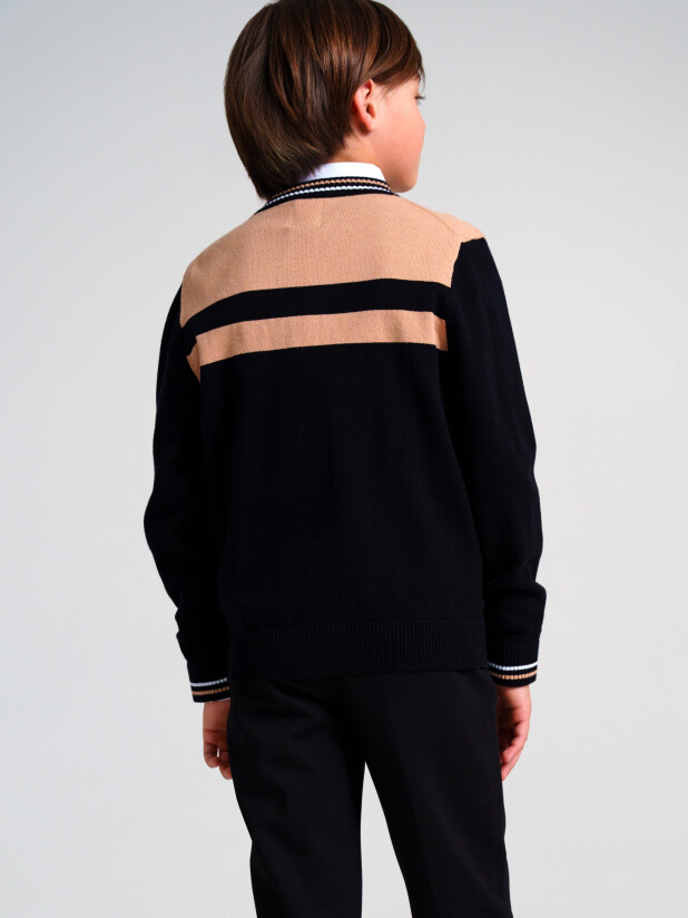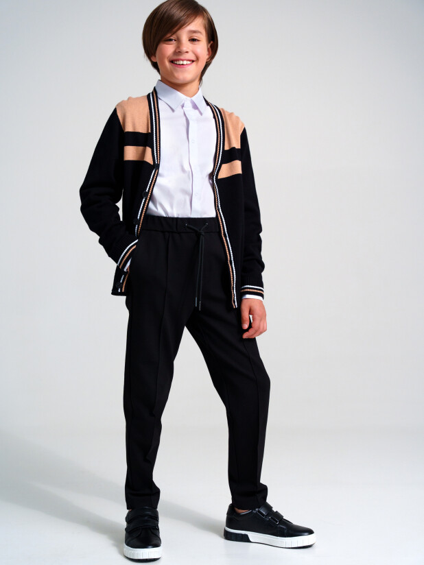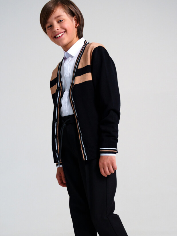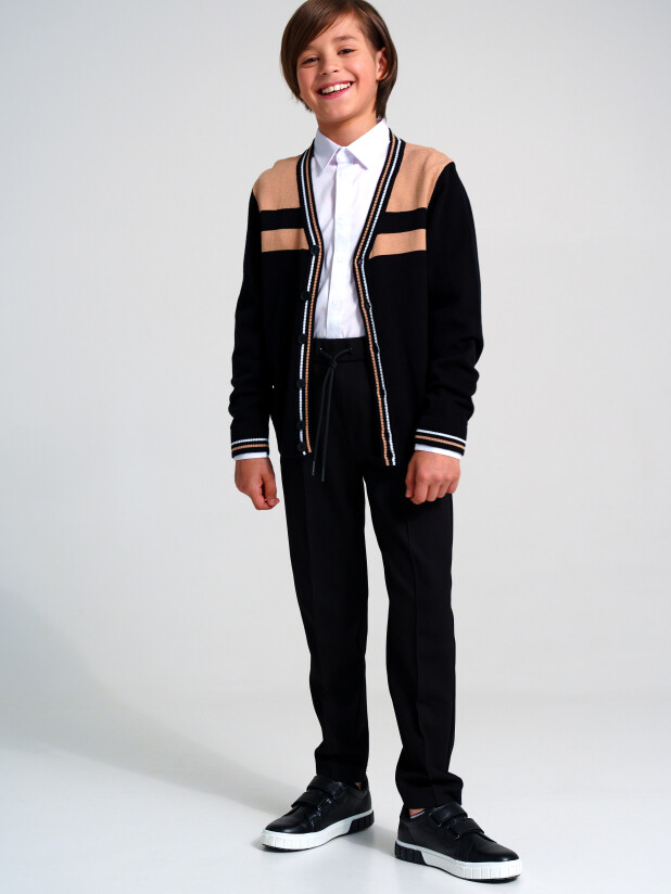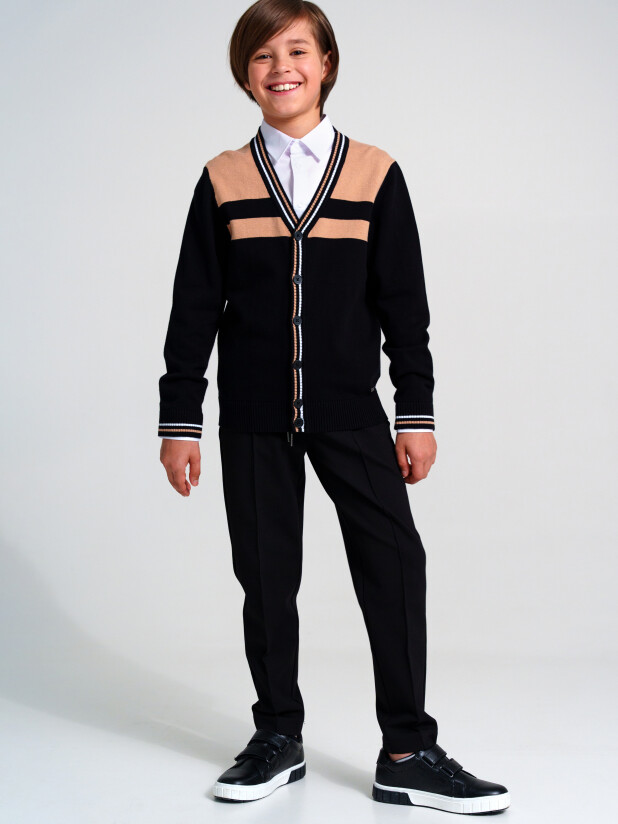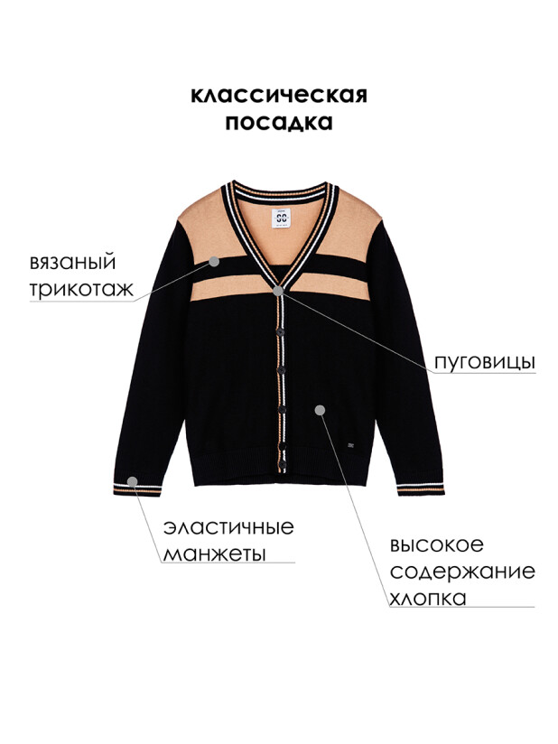 О товаре Классический коричневый школьный кардиган для мальчика подростка. Кардиган прямого силуэта на пуговицах выполнен из вязаного трикотажа с высоким содержанием хлопка. Кофта в школу выглядит стильно, благодаря колорблоку и бежевой отделке по планке, горловине и манжетам. Рубашка, футболка или поло + кардиган для школьника составят красивый элегантный комплект для школы. СОСТАВ 82% хлопок, 18% нейлон Уход Ручная стирка. Максимальная температура стирки 30°С. Не отбеливать. Утюжить запрещено. Чистка запрещена. Не применять сушку в барабане. Горизонтальная сушка на плоскости в расправленном состоянии. Стирать с вещами такой же окраски. Бренд PlayToday АРТИКУЛ 22417028 Цвет Черный, Бежевый Возрастная категория Школьники, Подростки Пол Мужской Сезон Осень Год коллекции 2025 Страна бренда Германия Страна производства Китай Возраст 8 лет, 9 лет, 10 лет, 11 лет, 12 лет, 13 лет, 14 лет, 15 лет, 16 лет Маркировка Товары легкой промышленности и одежда Миниколлекция School