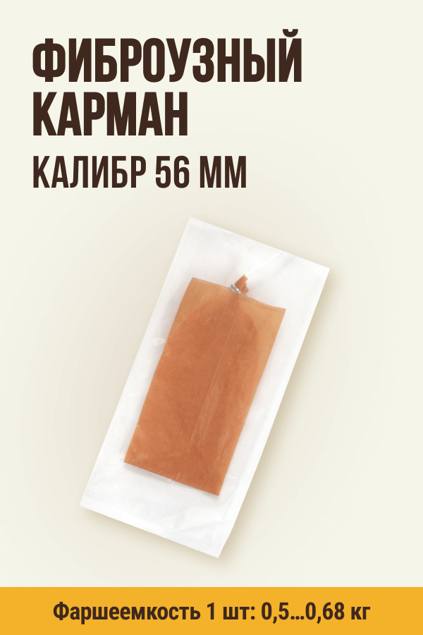 Карман колбасный фиброузный, крем, 56 мм, длина 31 см, клипса с петлей - 1 штука