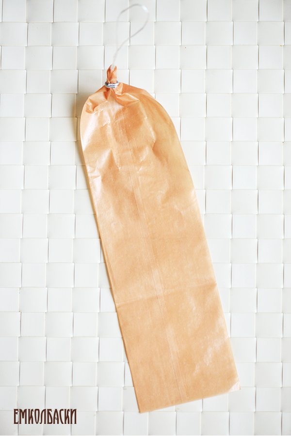 Подвешенный в духовке, климатической камере или в коптильне колбасный батон стандартной длины 30 см будет неотличим от "магазинного", ведь у него на поверхности не будет следов от соприкосновения с поддоном или решеткой.