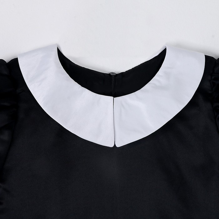 * Платье: — элегантное чёрное платье из атласа и полиэстера с белым воротником, который придаёт образу нотку строгости и изысканности. Талию подчёркивает стильный белый бант.