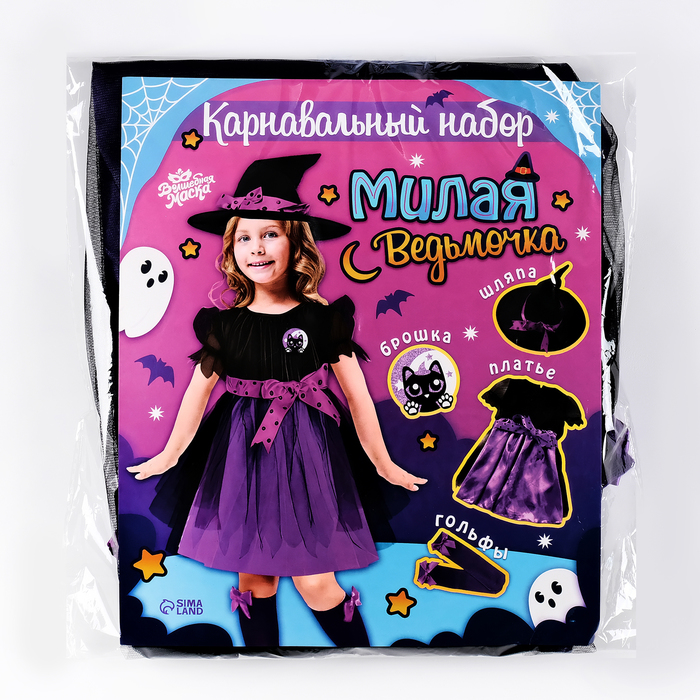 Карнавальный набор «Милая ведьмочка» идеально подойдёт для маленьких волшебниц, которые мечтают о таинственных приключениях. Набор включает всё необходимое для создания неповторимого образа.