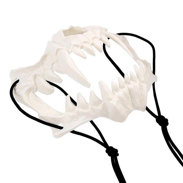 * Маска в виде челюсти придаёт образу загадочности. Выполнена из прочного и легкого материала. Она прикрепляется ко рту при помощи резинок, которые нужно зацепить за уши.