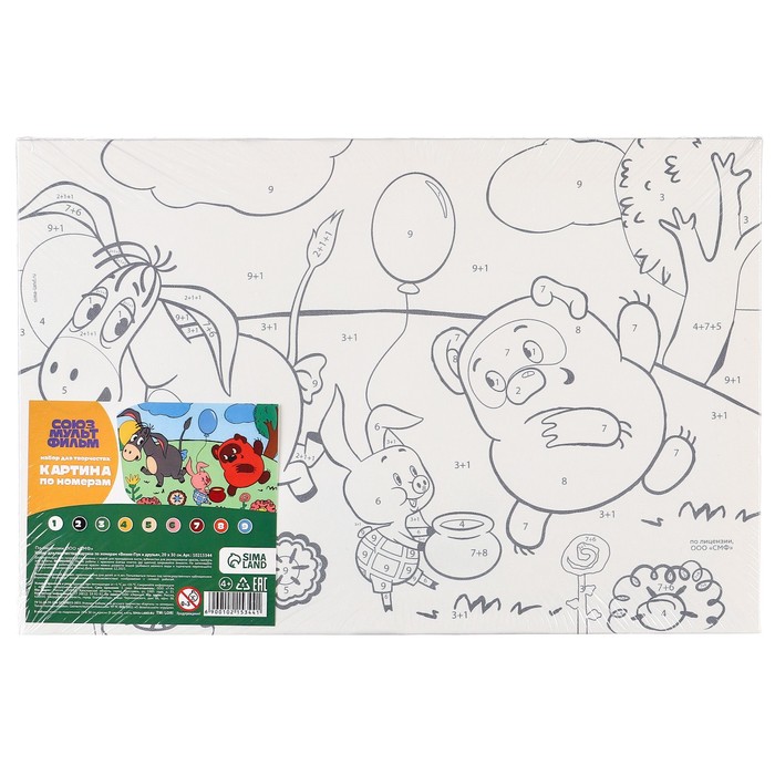 Производитель: Союзмультфильм; Габариты: 30 x 30 x 1,5; Страна: Россия; В боксе: 50 шт; Состав: Текстиль, краска, кисть; Материалы: текстиль, краска, кисть; Фасовка: по 1 шт; Индивидуальная упаковка: Плёнка; Сертификат: ЕАС; Количество цветов: 9; Для кого: Унисекс; Размер, см: 20 х 30; Возраст: От 3 лет; Тематика: Мультфильмы, Детская; Тематика праздника: Универсальная тематика; Возраст: Детский; Ориентация изображения: Горизонтально; Вид: Холст под роспись; Составляющие набора: Товары для творчества; Темпер. ограничение НЕ НИЖЕ ℃: -40; Возраст: Для детей; Размер: Средний; Уровень сложности: Лёгкий; Изображение: Мультфильмы; Комплектация набора: С кистью (-ями), С красками
