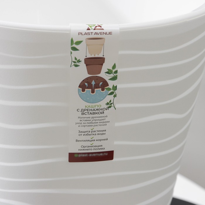 Производитель: Plast-Avenue; Габариты: 21 x 21 x 24; Страна: Россия; В боксе: 12 шт; Состав: Пластик; Материалы: пластик; Фасовка: по 1 шт; Индивидуальная упаковка: Без упаковки; Габариты товара: 21 см × 21 см × 24 см; Сертификат: Не подлежит сертификации; Цвет: Белый; Диаметр, см: 21,5; Высота, см: 24; Объём, л: 5,2; Вид установки: Настольное; Рисунок: Нет; Материал: Пластик; Можно оставлять зимой на улице: Нет; Поддон в комплекте: Нет; Особенности: Со вставкой; Тип полива: Без системы полива