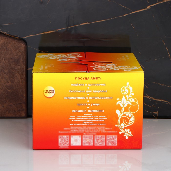 Благодаря использованию высококачественной нержавеющей стали кастрюля отличается высокой механической прочностью и стойкостью к коррозии.