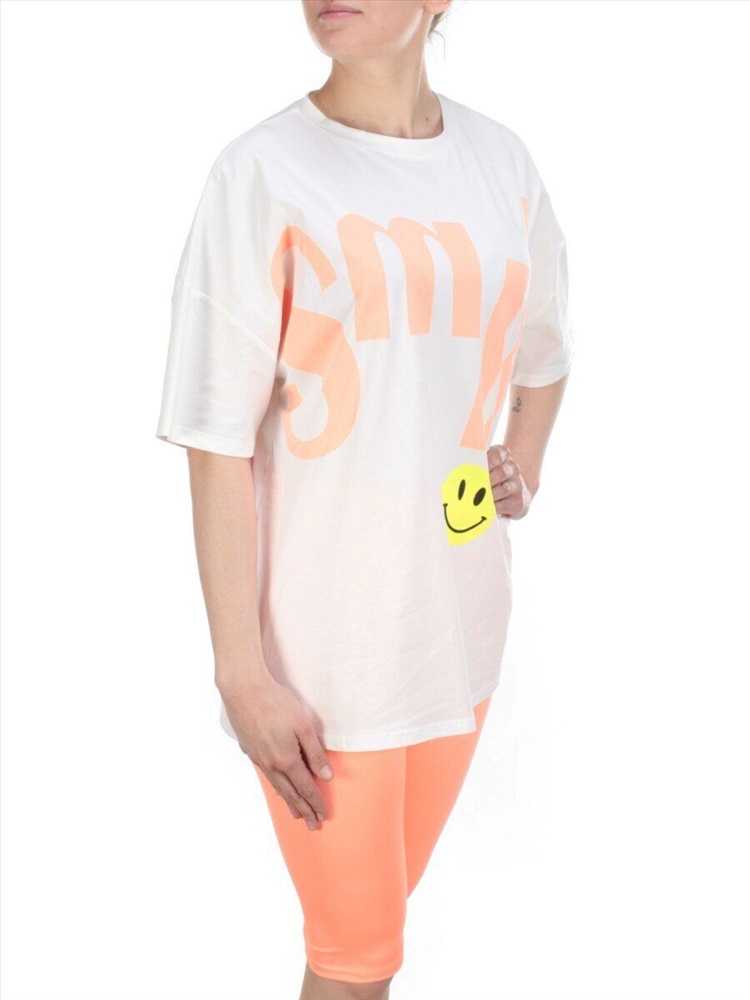 Кол-во в упаковке: 1 Костюм-двойка женский Артикул: KD-792 WHITE/PURPLE Дополнительная информация: Круглый вырез. Приталенный фасон. Фото сделано на модели размера 46 Рост модели 175 см., объем груди 90, талия 78, бедра 99. Витринный образец свободного размера 46-48-50 российский: Футболка: Длина спины: 72 см Объем груди: 130 см (+ тянется) Объем талии: 120 см (+ тянется) Объем бедер: 128 см (+ тянется) Длина плеча: 26 см Длина рукава: 16 см Состав ткани: 100% хлопок. Лосины: Объем талии: 72 см (+ тянется) Длина штанины по внутреннему шву: 36 см Длина штанины по внешнему шву: 57 см Объем штанины по низу: 36 см (+ тянется) Высота посадки спереди: 23 см Состав ткани: 90% хлопок, 10% эластан. Размеры указанные на изделии и соответствие российским стандартам: 46-48-50 российский (свободный) Интернет магазин одежды Комментарии к товару