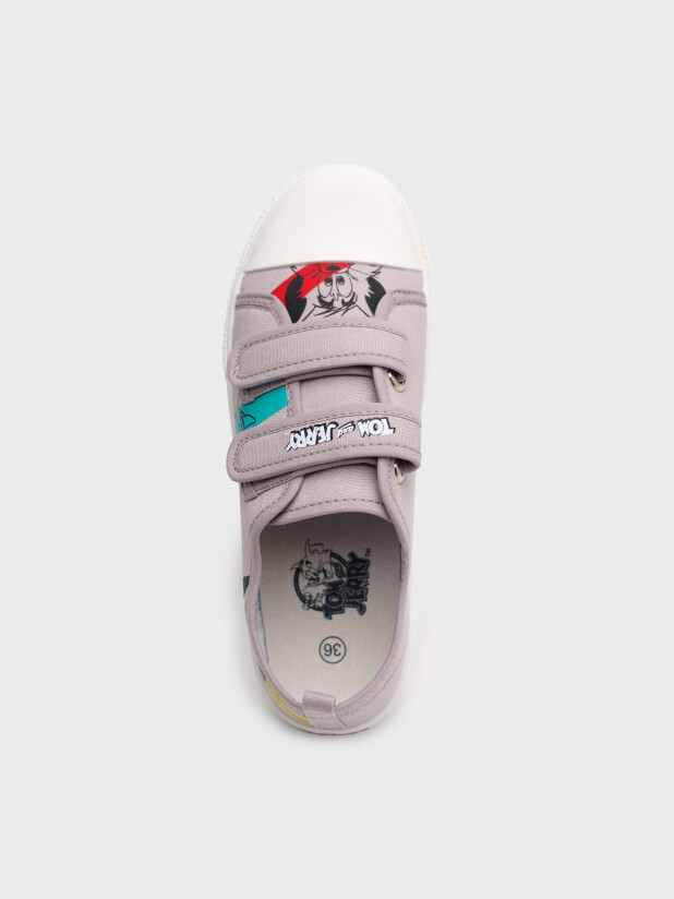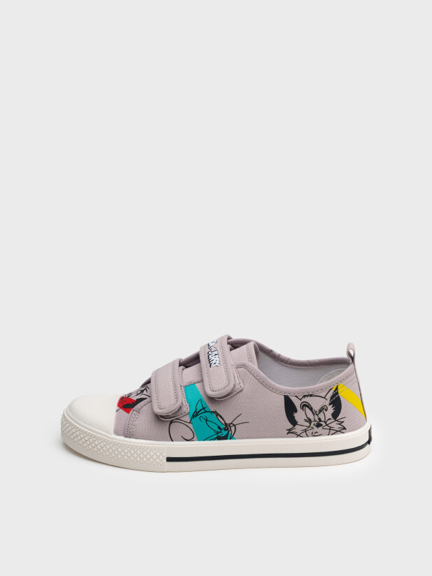 Кеды для мальчика подростка. Стильные текстильные кеды с принтом любимых героев WARNER BROTHERS (Уорнер Бразерс): мышонком Джерри (Jerry) и котом Томом (Tom). Две застежки-липучки очень удобны при обувании. В обуви используется текстильная подкладка c 80% содержанием хлопка, которая обладает высокой гигроскопичностью. Стелька выполнена из свиной натуральной кожи и имеет анатомический элемент для поддержания свода стопы. Стелька съемная. Облегченная подошва из ПВХ гибкая, не скользит и устойчива к истиранию.