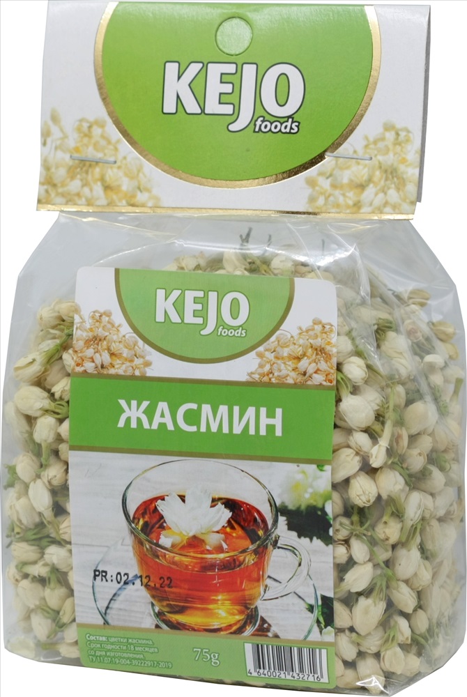 Цветки жасмина сушеные.Нежный, сладкий и ароматный жасминовый чай точно покорит любого! Своими полезными свойствами он известен давно. Эфирные масла в составе цветков жасмина влияют на пищеварение, ускоряя обмен веществ и циркуляцию крови, поэтому его полезно употреблять всем, кто стремится похудеть. Отвар жасмина полезен при бессонницах, стрессах и деперссиях, а также заболеваниях сердечно-сосудистой системы (укрепляет стенки сосудов, делая их эластичными).Можно смешивать с черным или зеленым чаем в классическом стиле, регулируя пропорции (чай/жасмин) по своему вкусу.