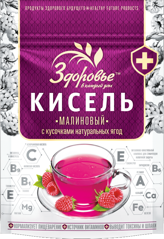 Смесь для приготовления малинового киселя.Кисель — традиционный русский напиток. Его любят люди всех возрастов, а также он входит в состав меню множества лечебных диет. Кисели содержат натуральные ягоды и фрукты, которые являются источником большого количества полезных веществ (витаминов и микроэлементов), легкоусвояемых сахаров и клетчатки. Крахмал, входящий в их состав, обладает обволакивающим действием, защищает слизистые оболочки гортани и желудка. Основу киселей составляют натуральные соки, а теперь еще натуральные ягоды в кусочках.В составе: сахар белый, крахмал картофельный, порошок малины сухой, кусочки малины сушеные, сок свекольный сухой, регулятор кислотности лимонная кислота, витаминный премикс (витамины: C, D3, B1, B2, B6, E, B9 (фолиевая кислота), PP, A).