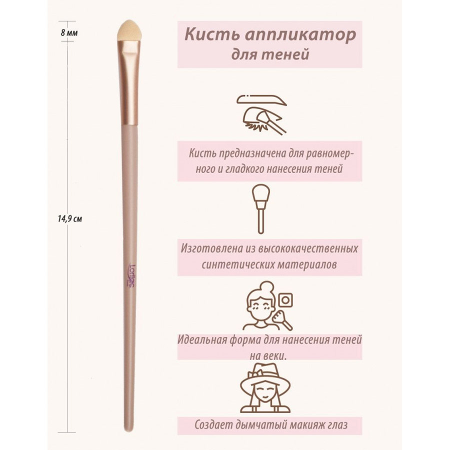 Кисть аппликатор для теней наносит продукт плотным слоем. Подходит для любых текстур, от жидких и до сухих и даже шиммерных теней. Заостренная форма спонжа позволяет аккуратно нанести тени во внутренний уголок глаз. Так же аппликатор подходит для нанесения теней на слизистую глаз.