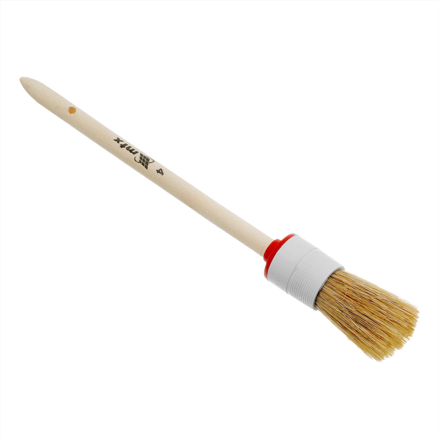 Круглая кисть MTX №4 82074 диаметром 25 мм, с натуральной щетиной и деревянной ручкой, пригодится в быту для окрашивания узких длинных поверхностей. Светлая натуральная свиная щетина с добавлением искусственной обладает высокой износоустойчивостью и может использоваться для нанесения красок с содержанием растворителей, а также масляных красок и лаков. Преимущества