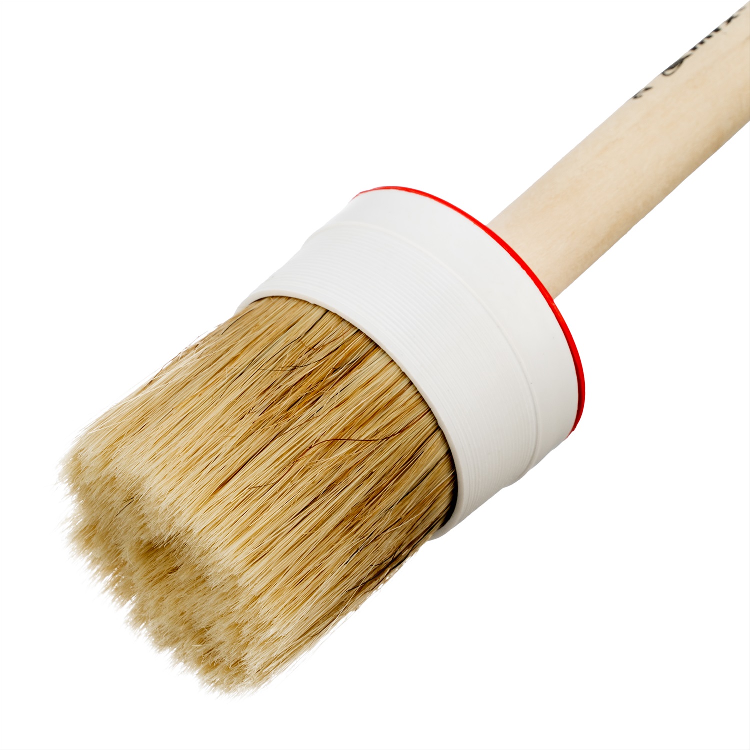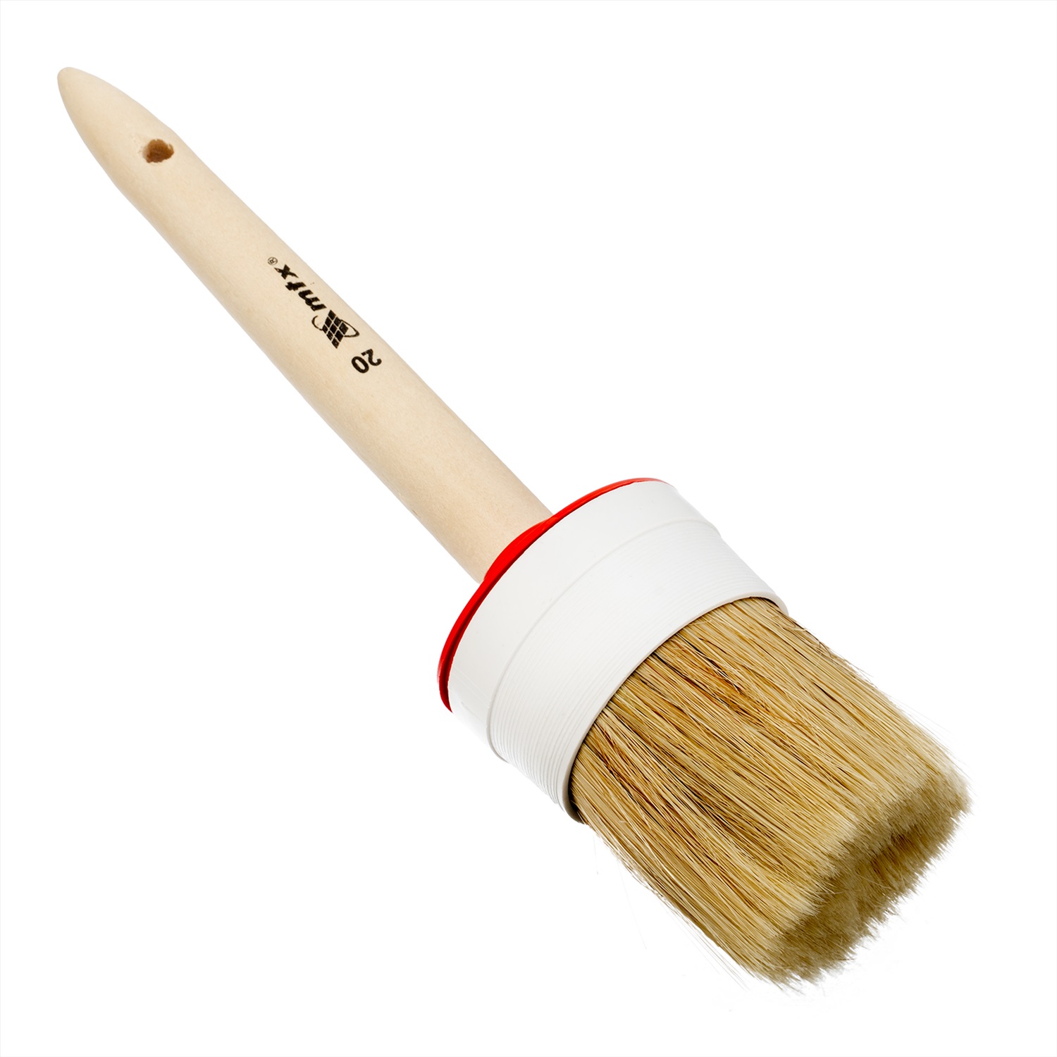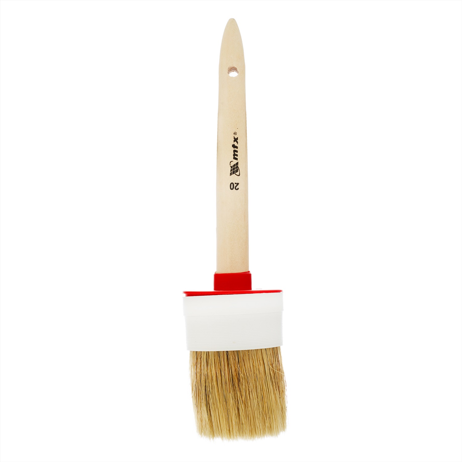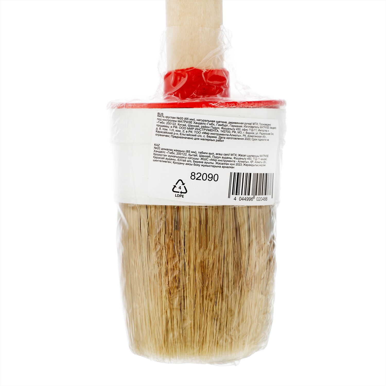 Круглая кисть MTX №20 82090 диаметром 65 мм, с натуральной щетиной и деревянной ручкой, пригодится в быту для окрашивания узких длинных поверхностей. Светлая натуральная свиная щетина с добавлением искусственной обладает высокой износоустойчивостью и может использоваться для нанесения красок с содержанием растворителей, а также масляных красок и лаков. Преимущества