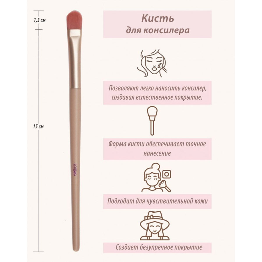 Кисть для консилера обладает густым ворсом, который распределяет средство равномерно и плавно вписывает его в тон кожи. Кисточка изготовлена из высококачественных материалов, которые мягко и бережно работают с кожей. Большая кисть для пудры и румян идеально подойдет для нанесения как рассыпчатой, так и прессованной пудры, а также для нанесения румян. Большая и пушистая кисточка обеспечивает равномерное покрытие и придает коже естественный матовый вид.