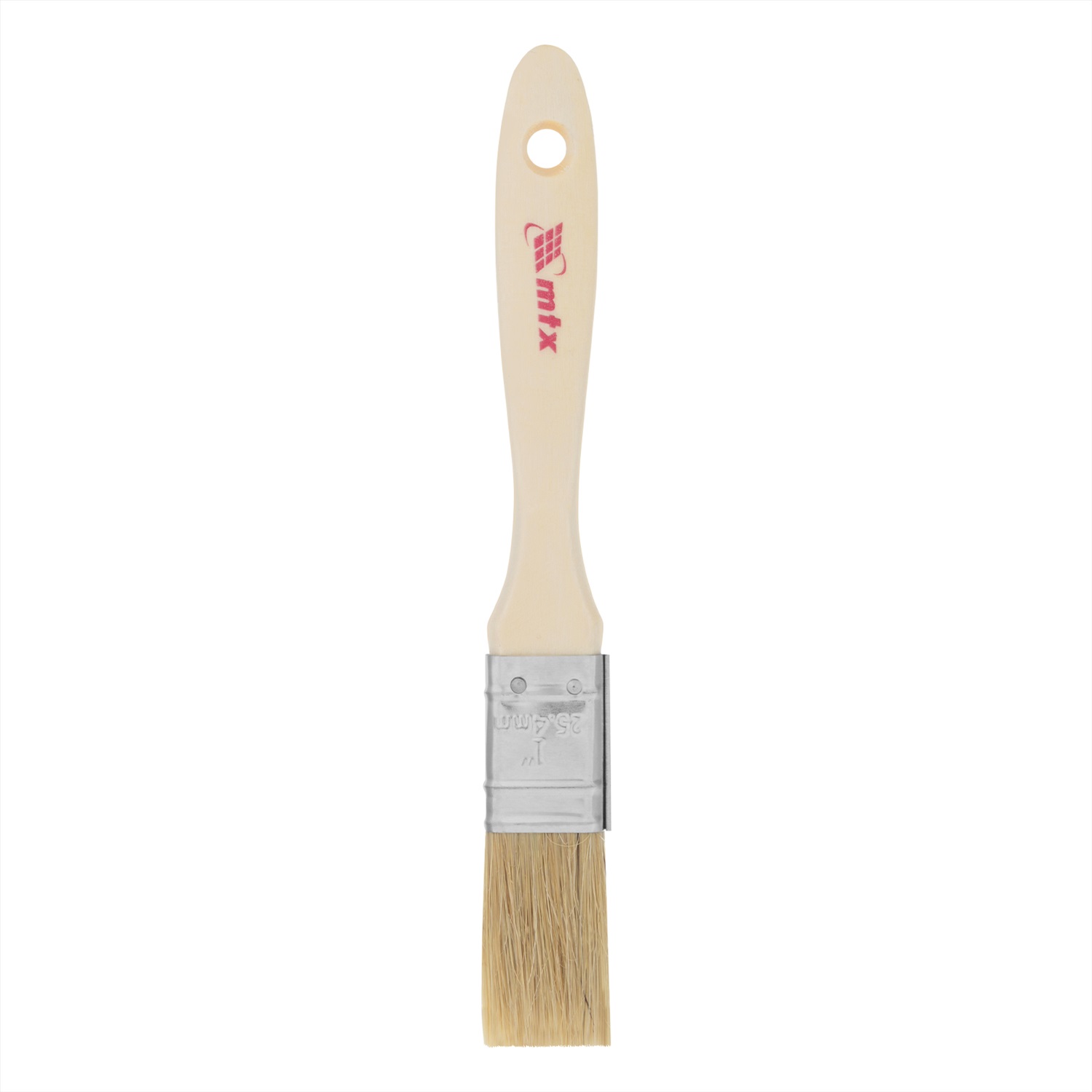 Плоская кисть MTX «Евро» 83051 шириной 1 дюйм, с натуральной щетиной и деревянной ручкой, используется для профессионального окрашивания поверхностей. Рекомендуется для нанесения агрессивных ЛКМ с содержанием растворителей. Преимущества