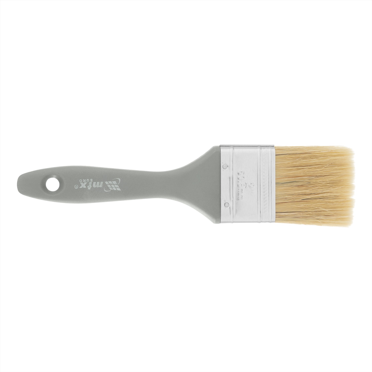 Плоская кисть MTX «Евро» 83063 шириной 2 дюйма, с натуральной щетиной и пластмассовой ручкой, используется для профессионального окрашивания поверхностей. Рекомендуется для нанесения агрессивных ЛКМ с содержанием растворителей. Преимущества
