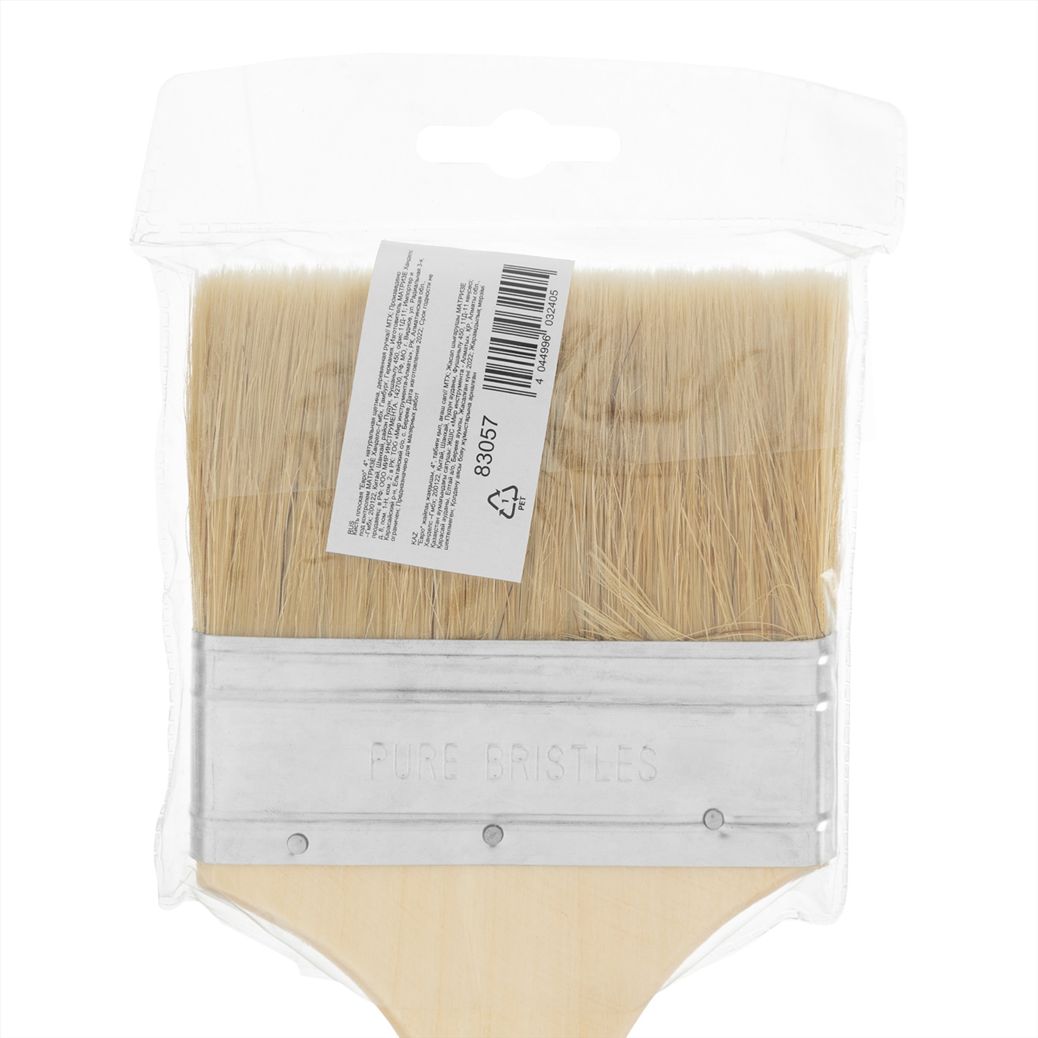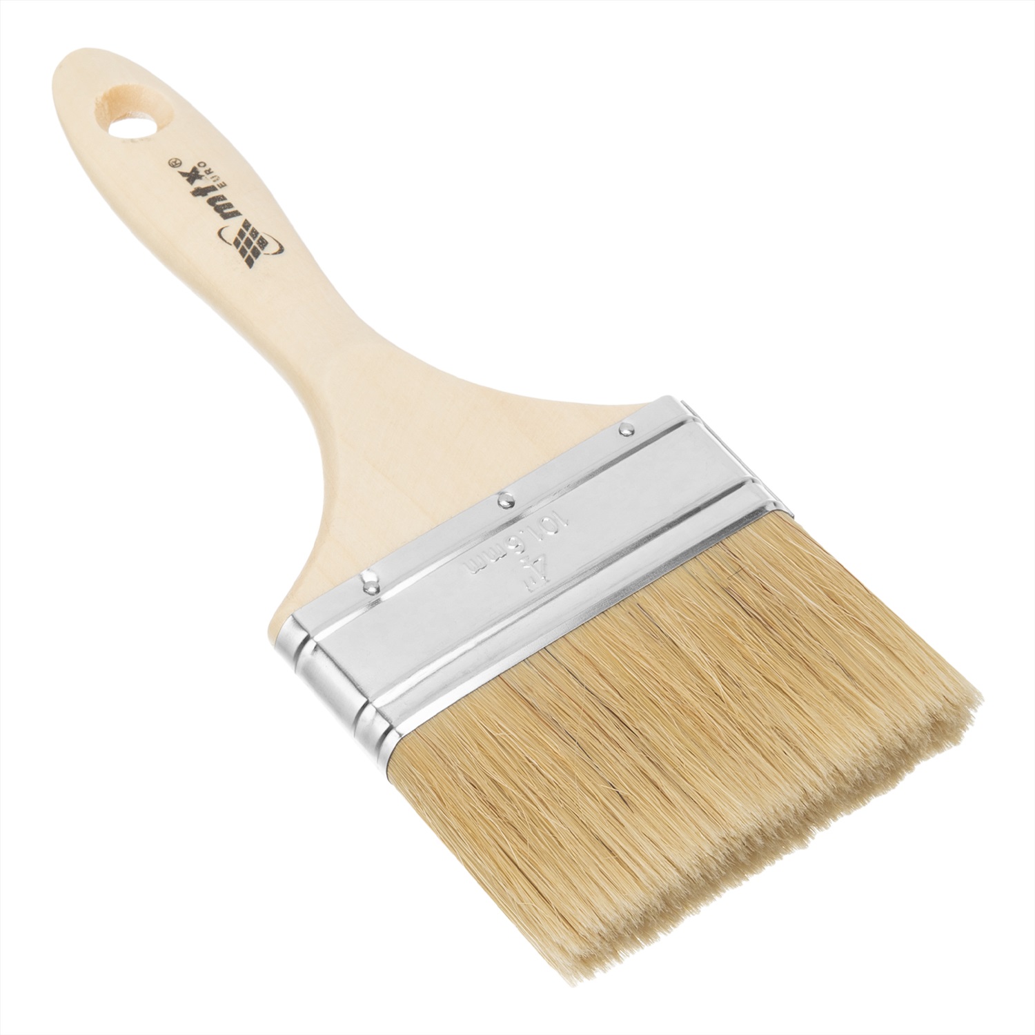 Плоская кисть MTX «Евро» 83057 шириной 4 дюйма, с натуральной щетиной и деревянной ручкой, используется для профессионального окрашивания поверхностей. Рекомендуется для нанесения агрессивных ЛКМ с содержанием растворителей. Преимущества