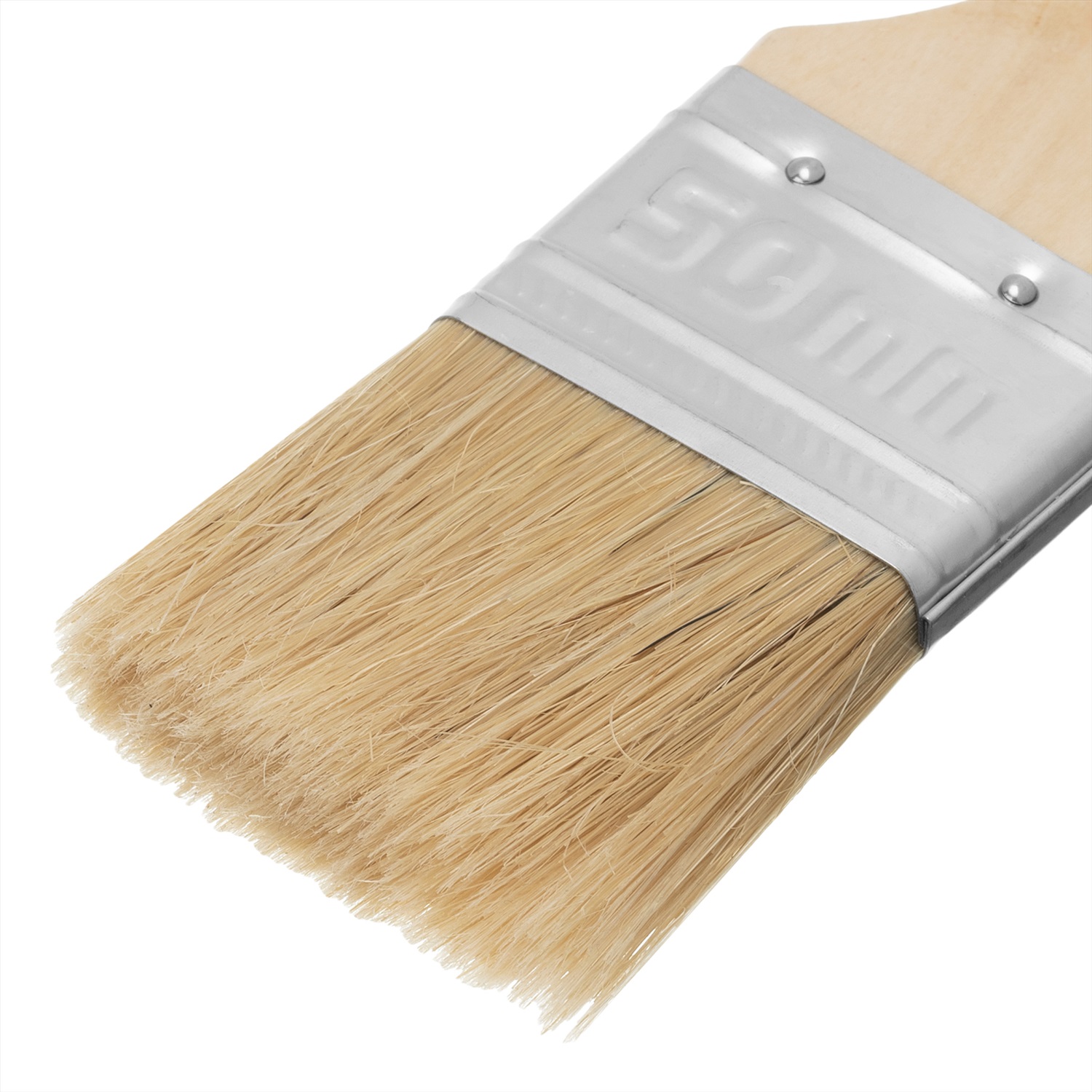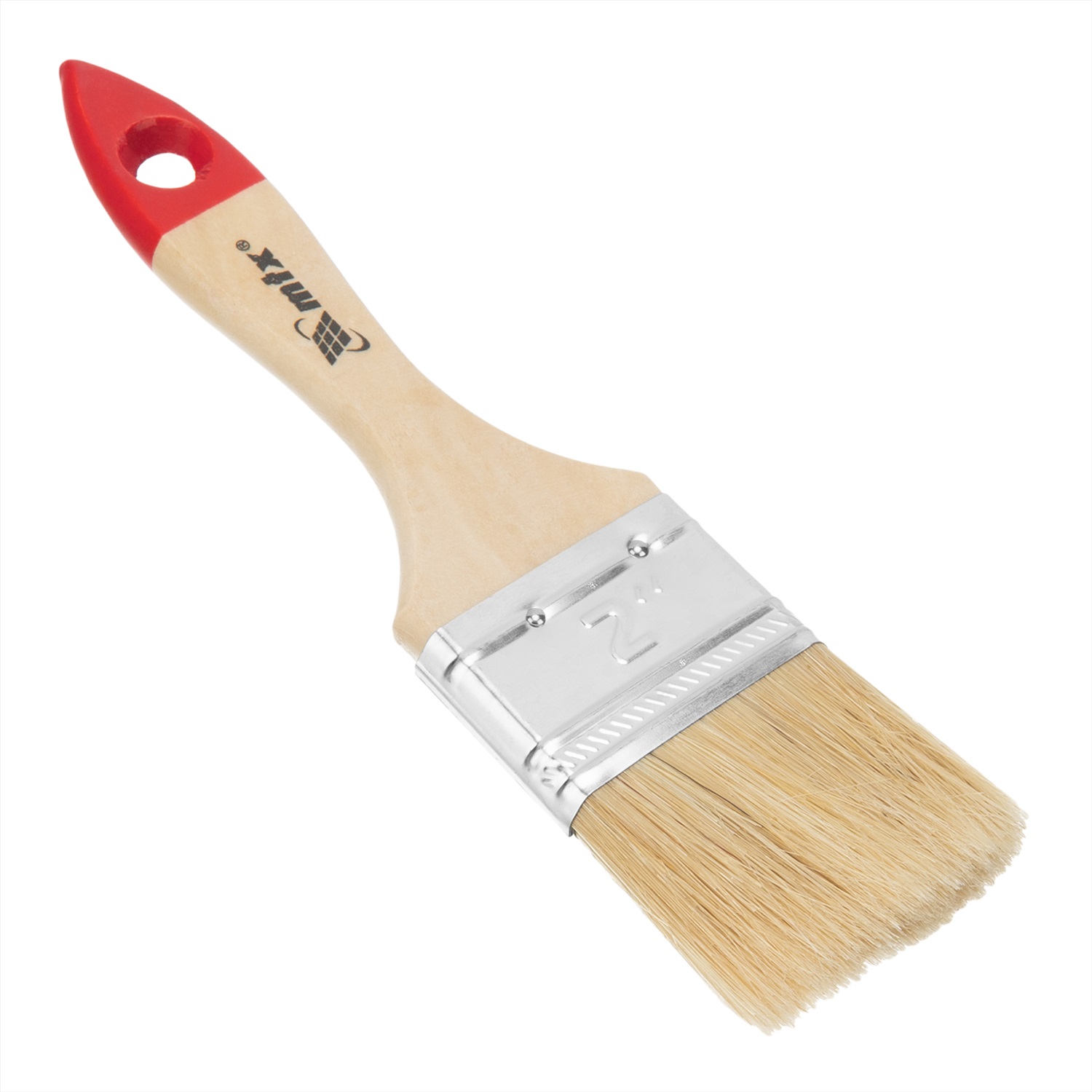 Плоская кисть MTX «Стандарт» 82530 шириной 2 дюйма (50 мм), с натуральной щетиной и деревянной ручкой, — инструмент для проведения бытовых малярных работ. Натуральная светлая щетина обладает высокой износоустойчивостью и подходит для нанесения красок на основе растворителей. За счет ширины 50 мм кисть подходит для окрашивания узких поверхностей, например, рам. Преимущества