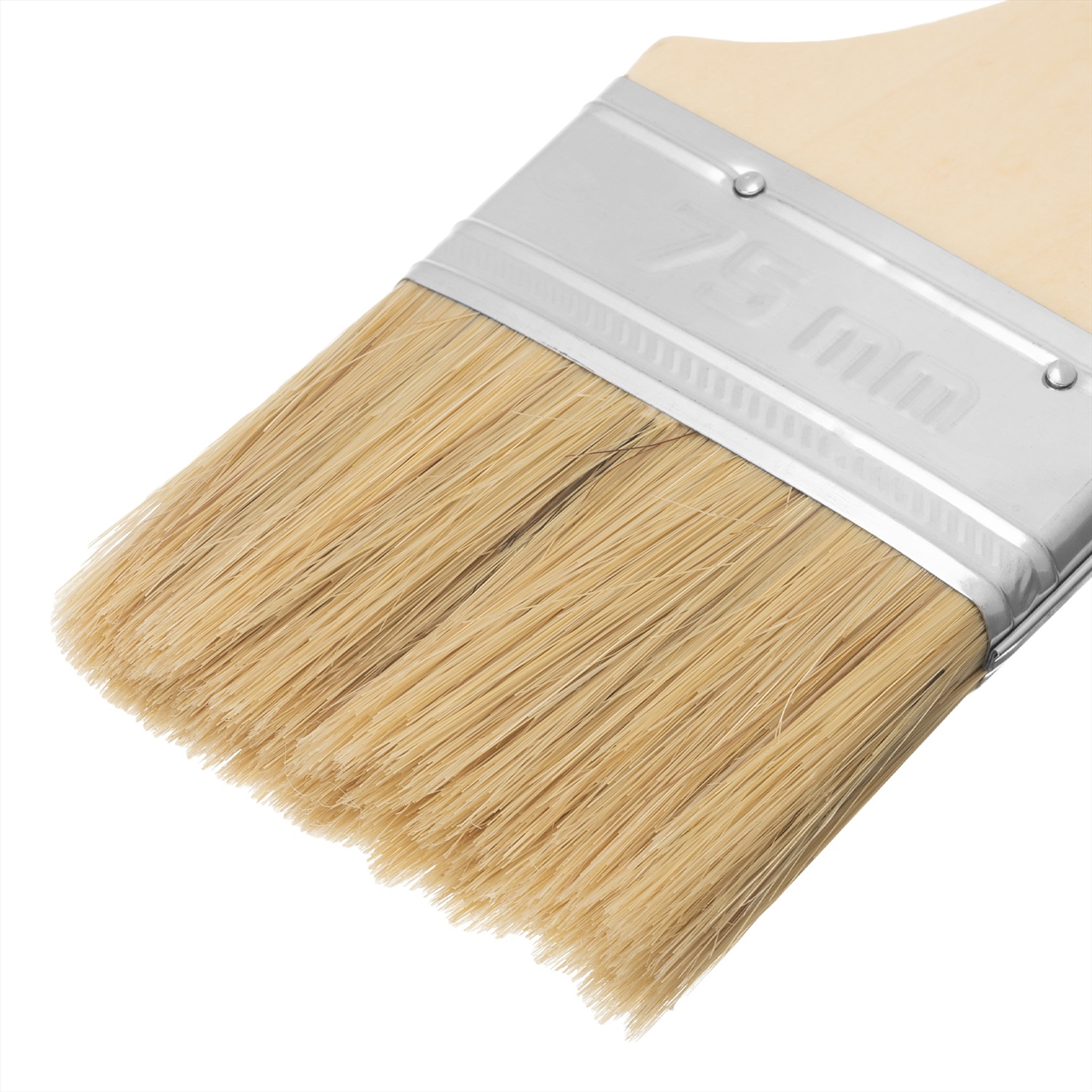 Плоская кисть MTX «Стандарт» 82540 шириной 3 дюйма (75 мм), с натуральной щетиной и деревянной ручкой, — инструмент для проведения бытовых малярных работ. Натуральная светлая щетина обладает высокой износоустойчивостью и подходит для нанесения красок на основе растворителей. За счет ширины 75 мм кисть подходит для окрашивания участков большой площади. Преимущества