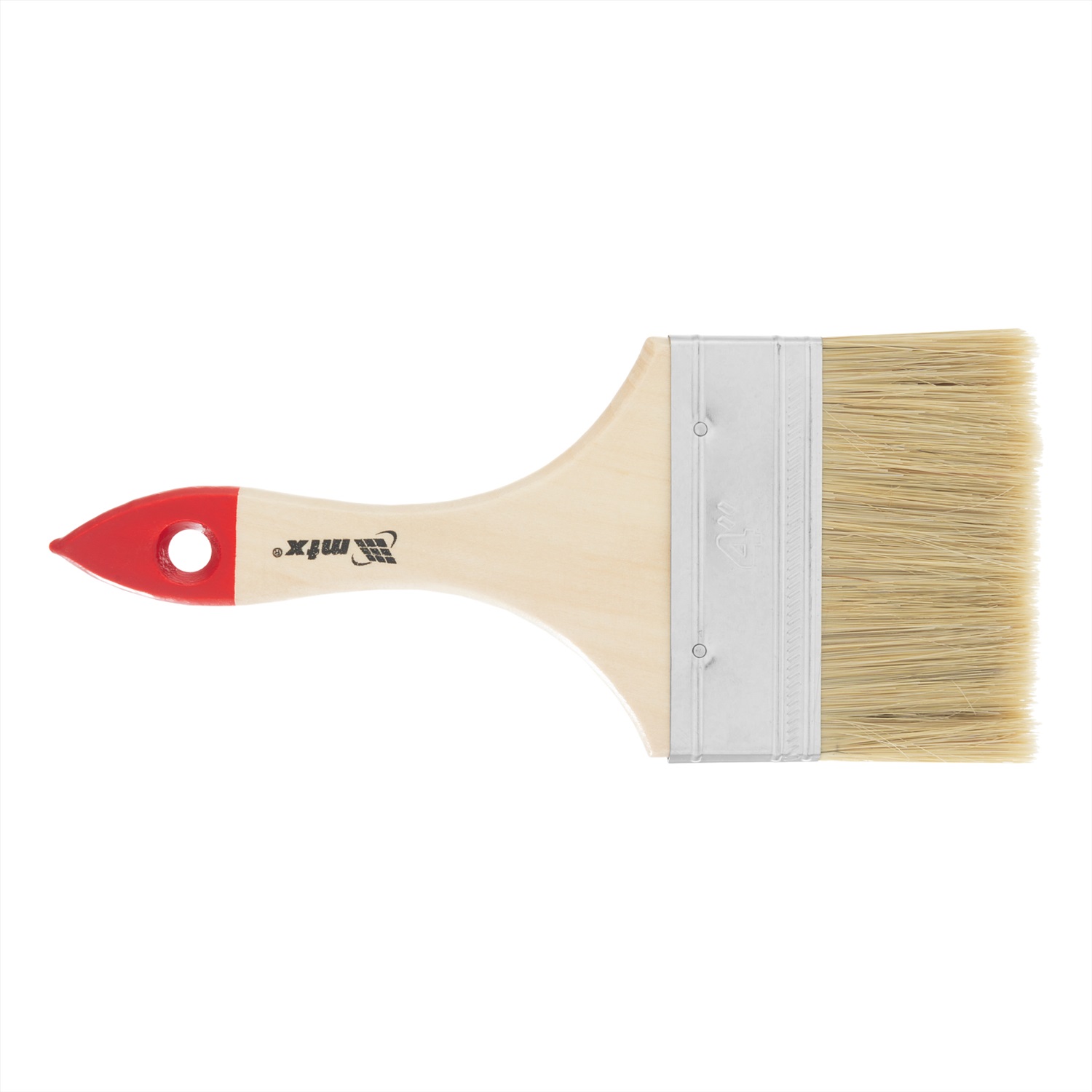 Плоская кисть MTX «Стандарт» 82545 шириной 4 дюйма (100 мм), с натуральной щетиной и деревянной ручкой, — инструмент для проведения бытовых малярных работ. Натуральная светлая щетина обладает высокой износоустойчивостью и подходит для нанесения красок на основе растворителей. За счет ширины 100 мм кисть подходит для окрашивания участков большой площади. Преимущества