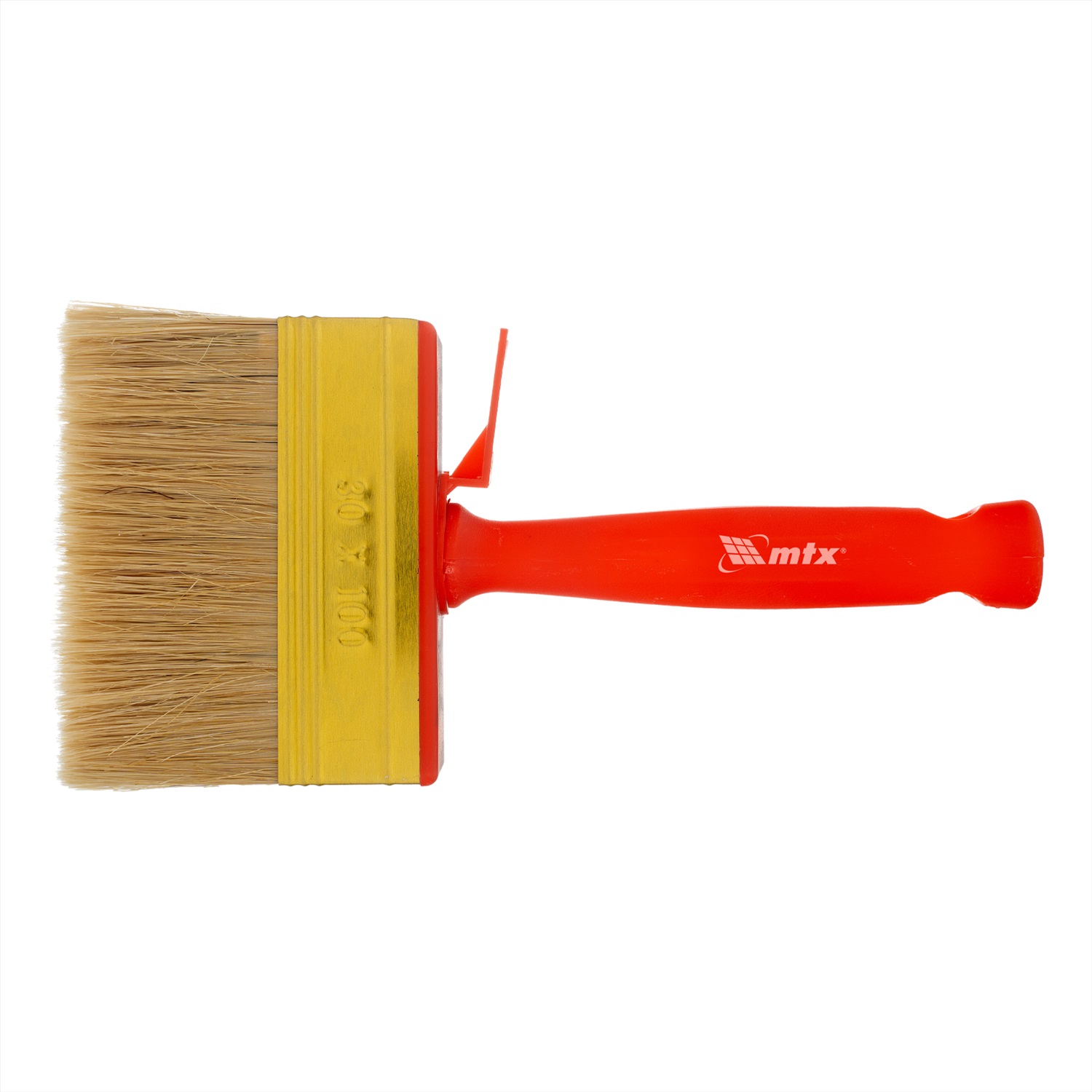 Кисть-ракля MTX 84121 толщиной 30 мм и шириной 100 мм, с натуральной щетиной, пластмассовыми корпусом и ручкой, используется для малярных работ на участках большой площади, поэтому удобна для обработки стен, потолков и фасадов. Натуральная щетина устойчива к химическому воздействию, поэтому не деформируется и сохраняет упругость при работе с ЛКМ на водной основе, грунтовками, масляными красками и клеящими составами. Преимущества