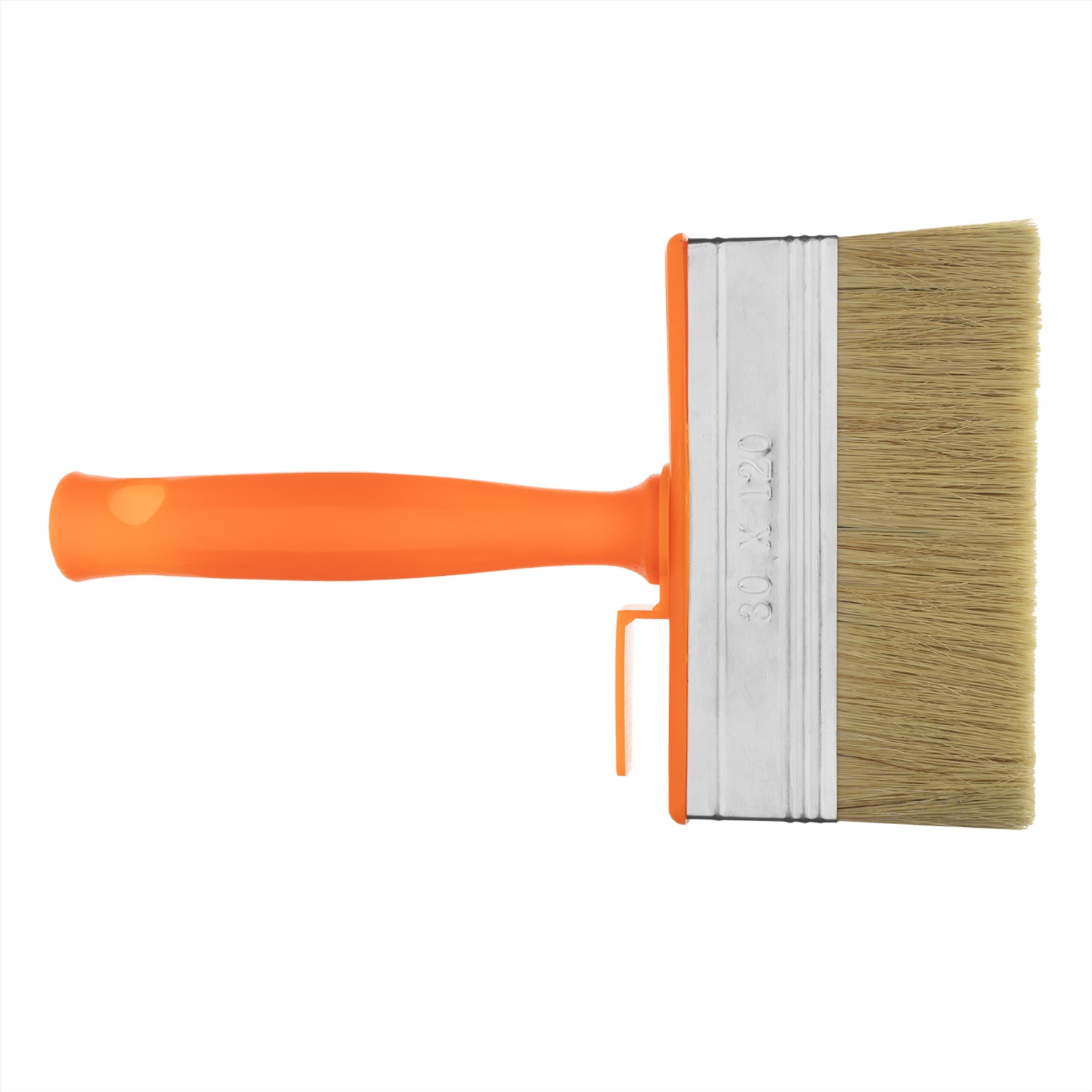 Кисть-ракля Sparta 841068 толщиной 30 мм и шириной 120 мм, с натуральной щетиной, пластмассовыми корпусом и ручкой, используется для малярных работ на участках большой площади, поэтому удобна для обработки стен, потолков и фасадов. Натуральная щетина устойчива к химическому воздействию, поэтому не деформируется и сохраняет упругость при работе с ЛКМ на водной основе, грунтовками, масляными красками и клеящими составами. Преимущества