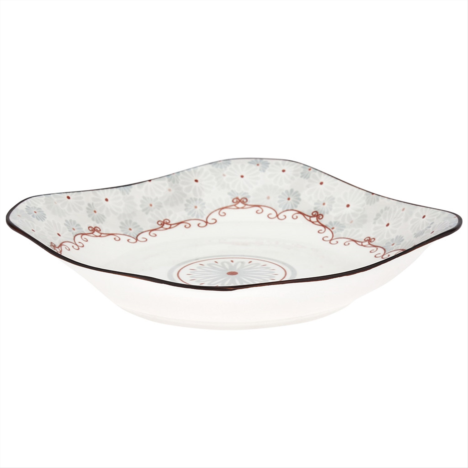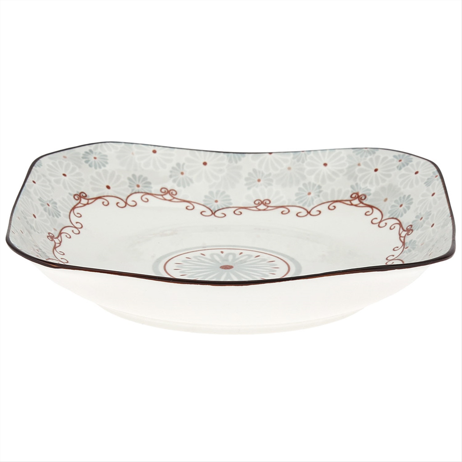 "Классика" Тарелка глубокая фарфоровая 178х178мм h33мм, 400мл, квадратная, с деколью, отводка (Китай)