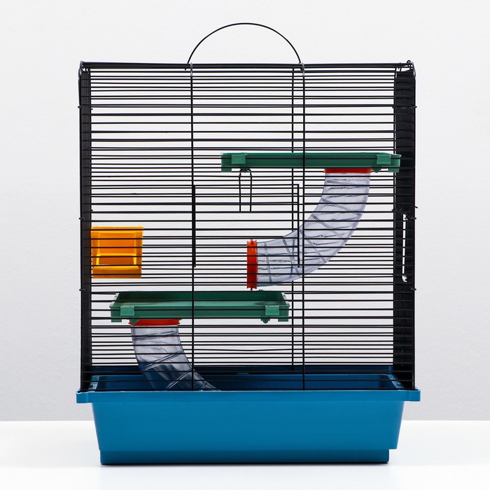 Клетка для грызунов "Дом" трехярусная, 39 x 29 х 49 см, микс цветов