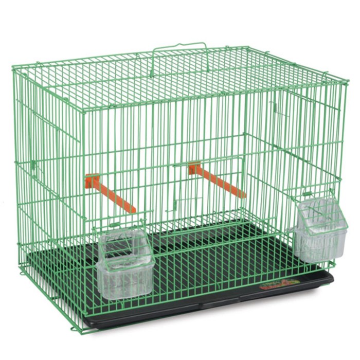 Клетка также оборудована специальным поддоном, облегчающим процесс уборки, а удобная ручка максимально упрощает транспортировку изделия.
