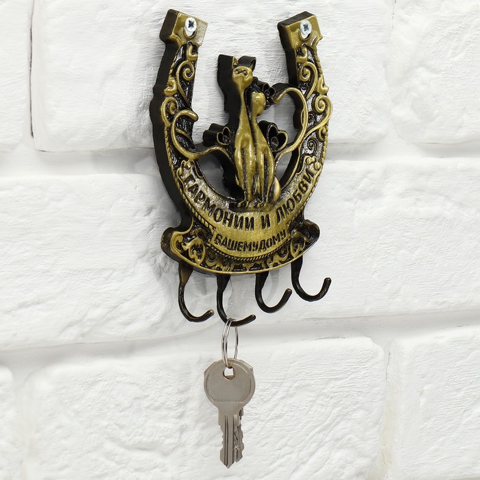 Ключница настенная подкова «Гармонии и любви»,10,5 х 12 см. станет полезным и очень красивым приобретением для Вашего дома. Прикрепите ее на удобное место в прихожей, и Ваши ключи всегда будут под рукой.