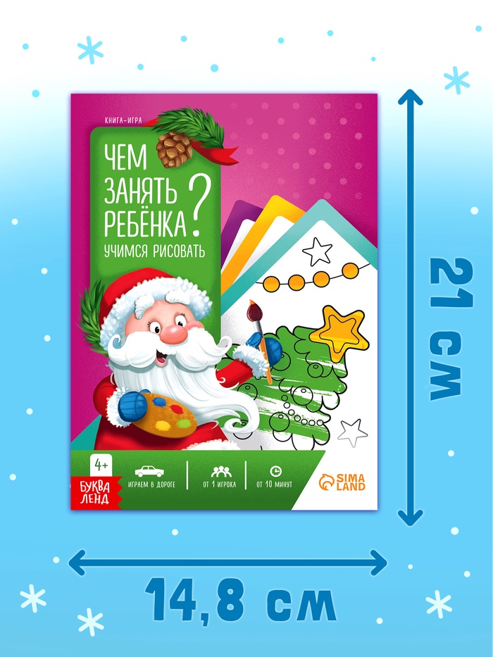 Производитель: БУКВА-ЛЕНД; Габариты: 0,8 x 14,5 x 21; Страна: Россия; В боксе: 45 набор; Состав: Бумага; Материалы: бумага; Фасовка: по 1 набор; Габариты товара: 14,8 см × 21 см × 1 см; Сертификат: ЕАС; Набор: Да; Формат: А5; Возраст: От 4 лет; Символ года: Нет; Язык издания: Русский; Тип обложки: Мягкий переплёт; Автор: Коллектив авторов Новогодний набор «Зимние развлечения» — это комплект из 5 книжек-игр, которые помогут скрасить праздничный досуг ребёнка от 4 лет. Логические головоломки, задания и яркие иллюстрации создают атмосферу веселья и увлечённости. Как играть? Каждая книга предлагает новые задания: найти спрятанные предметы, решить логические задачи или пройти лабиринт. Это похоже на «новогоднее приключение», где каждое задание — это шаг к новому открытию. Игра может проходить как в одиночку, так и с друзьями или родителями, превращая процесс в совместное развлечение. Что развивает? * Логическое мышление, помогая ребёнку анализировать и находить решения. * Внимание к деталям, словно вы учитесь замечать маленькие чудеса вокруг. * Наблюдательность, которая становится важным навыком для повседневной жизни и учёбы. * Творческое мышление через взаимодействие с красочными иллюстрациями и заданиями. Особенности * Мягкая обложка обеспечивает комфорт при длительном использовании, а компактный размер делает книги удобными для использования в любых условиях. * Яркие иллюстрации и разнообразные задания поддерживают интерес ребёнка на протяжении всего времени игры. * Универсальная тематика подходит для мальчиков и девочек, независимо от их интересов. * Подходит для детей от 4 лет, становясь отличным способом развития навыков в игровой форме. Игры, которые создают праздничное настроение Этот набор напоминает коробку с подарками, где каждая книга — это новый сюрприз. Она учит детей быть внимательными, терпеливыми и находить радость в каждом выполненном задании. Здесь нет скучных уроков, только веселье и удовольствие от процесса. «Зимние развлечения» — это не просто набор книжек, а источник праздничного настроения и полезного досуга. Отличный выбор для семейных игр или новогодних каникул! Дополнительно Размер книг (А5) — 14.8 × 21 см.