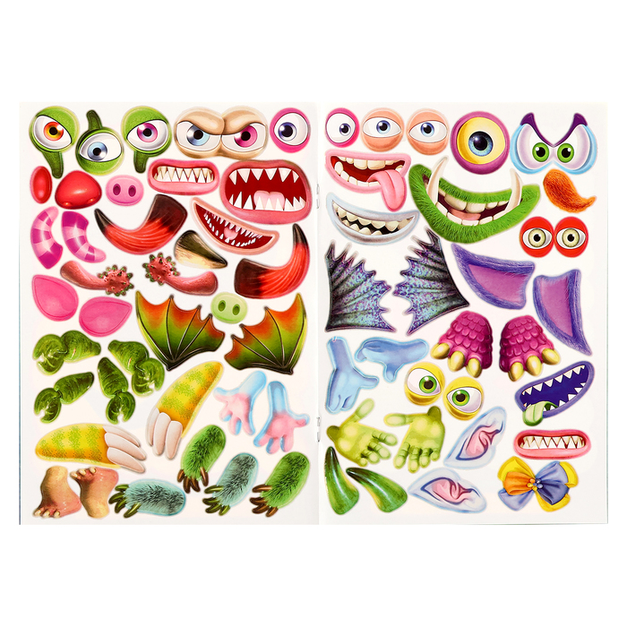 * 2 страницы с красочными наклейками, которые помогут создать уникальных монстриков на готовых шаблонах.