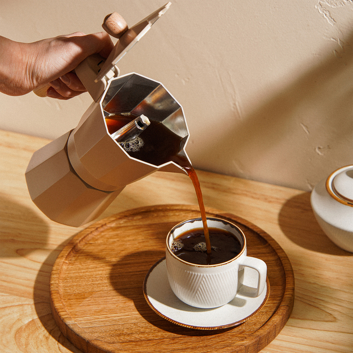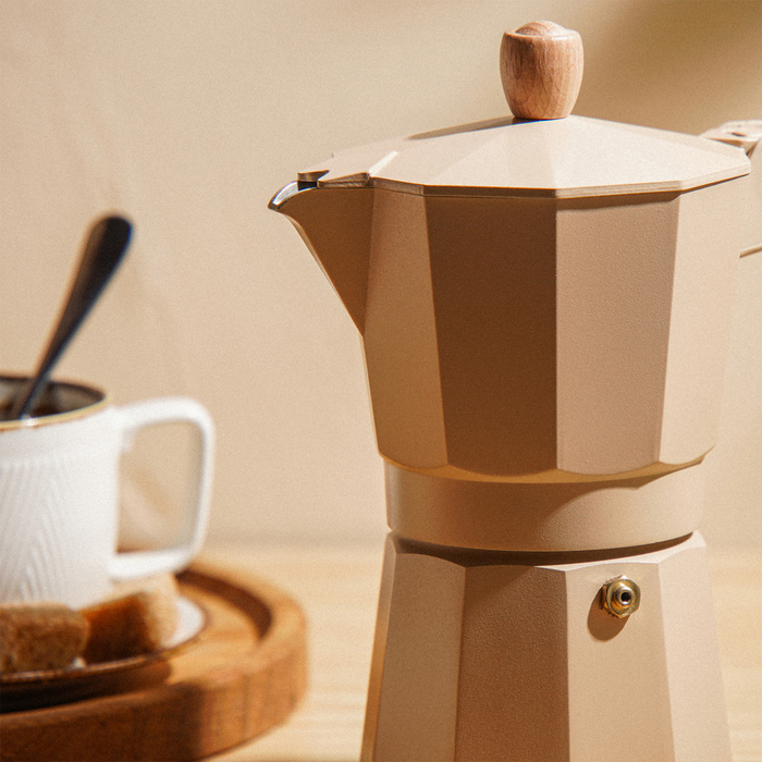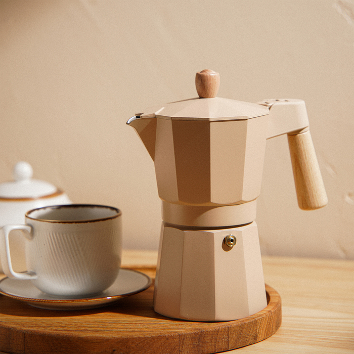Эта модель рассчитана на приготовление до шести чашек насыщенного эспрессо. Корпус выполнен из прочного алюминия, что гарантирует долговечность и надежность устройства. Бежевый цвет кофеварки добавит элегантности вашему интерьеру, делая её не только функциональной, но и стильной деталью на кухне.