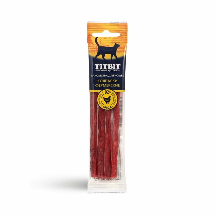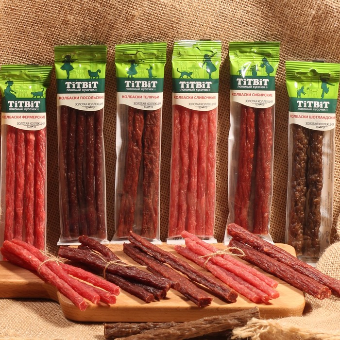Золотая коллекция – это линейка лучших лакомств TITBIT, разработанных при участии владельцев домашних животных и их питомцев. Колбаски «Фермерские» приготовлены из отборной говядины и куриного филе, которые придутся по вкусу даже самым привередливым любимцам.