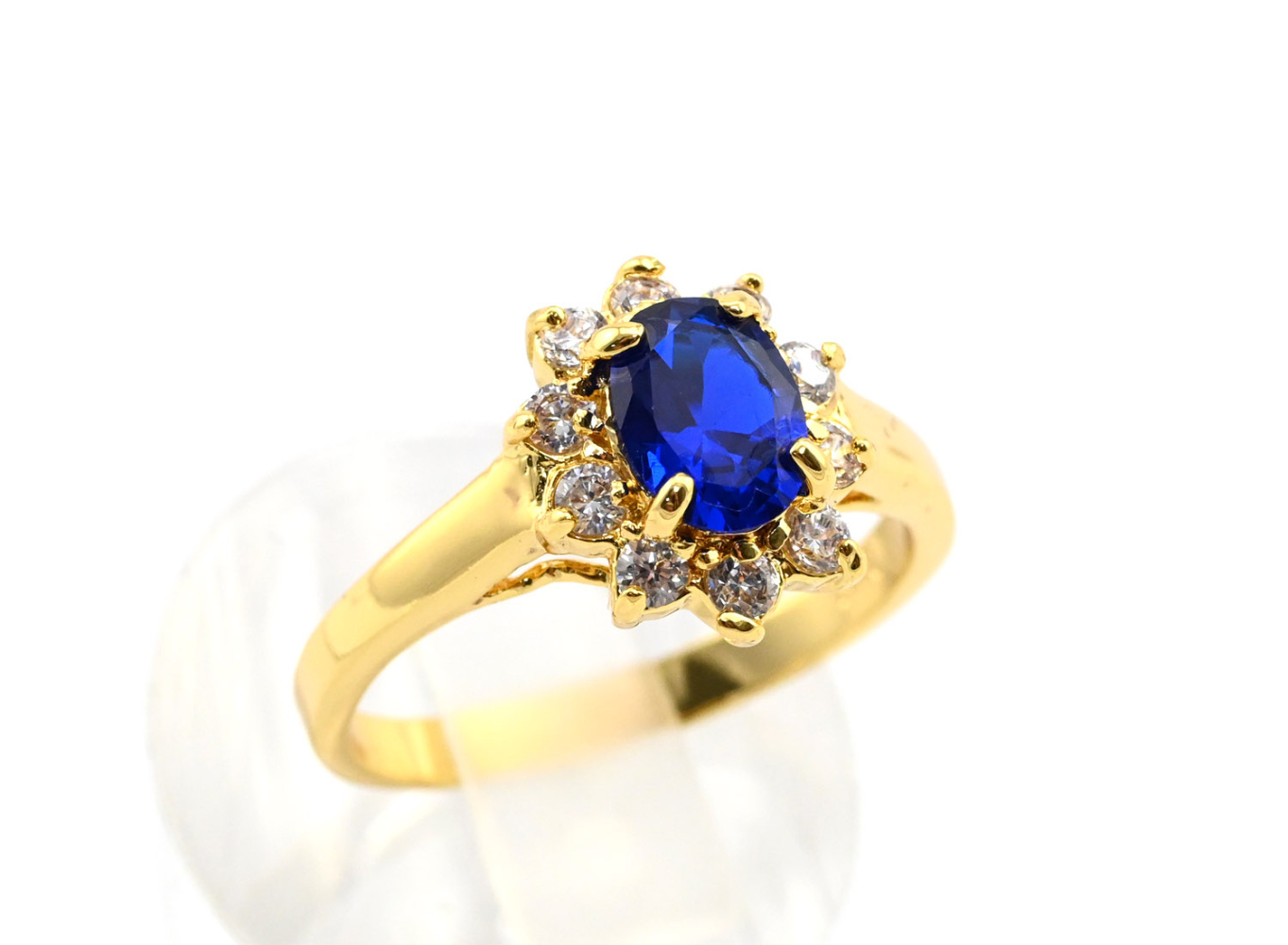 Кольцо циркон синий малый овал в цирконах Размер 18
