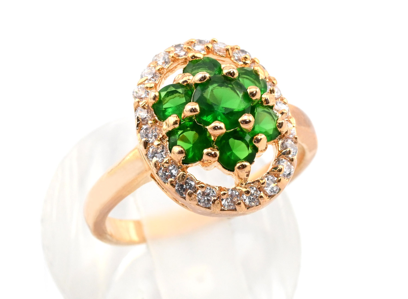 Кольцо c зелёным цирконом, Екатерина, украшение из ювелирного сплава с нанесённым гальваническим методом золотым покрытием толщиной 1 микрон со вставками из зелёного циркона.
