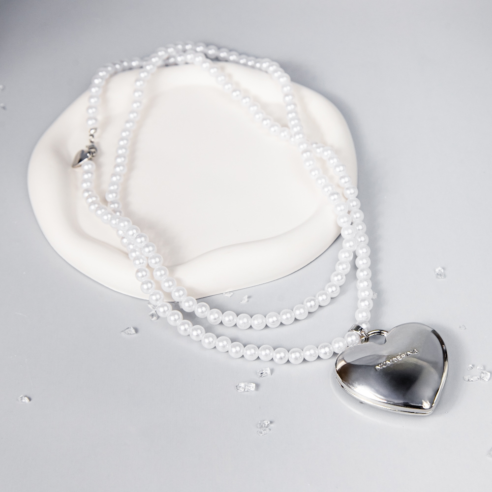 Тип изделия: Колье; Проба: Биж.сплав гальван.покр.; Цвет металла: Белый; Коллекция: Жемчуг, Сердце, Сотуары; Вставка: Жемчуг имитация; Размер: 112,0