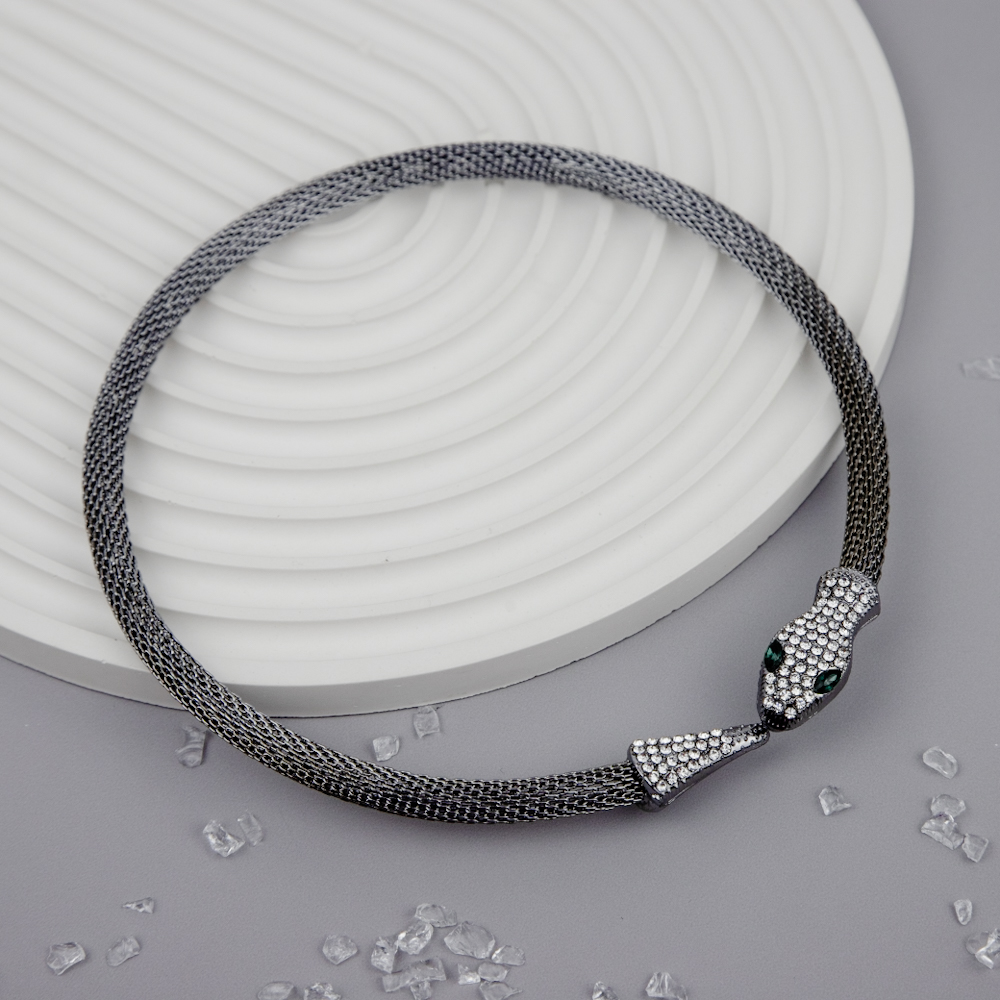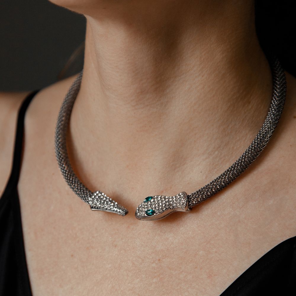 Тип изделия: Колье; Проба: Биж.сплав гальван.покр.; Цвет металла: Черный; Коллекция: Вечерняя коллекция, Змеи, Цветные вставки; Вставка: Кубический цирконий; Размер: безразмерное