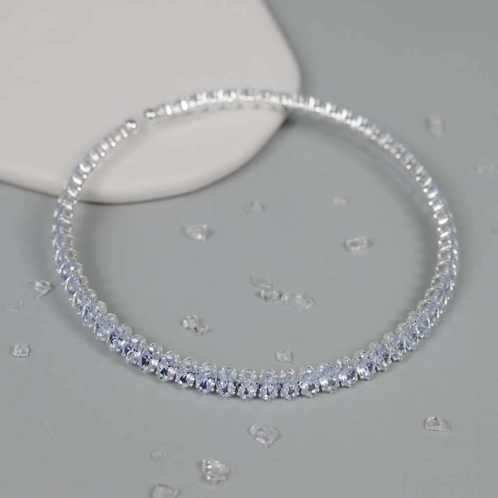 Тип изделия: Колье; Проба: Биж.сплав гальван.покр.; Цвет металла: Белый; Коллекция: Вечерняя коллекция, Фианиты белые; Вставка: Кубический цирконий; Размер: безразмерное