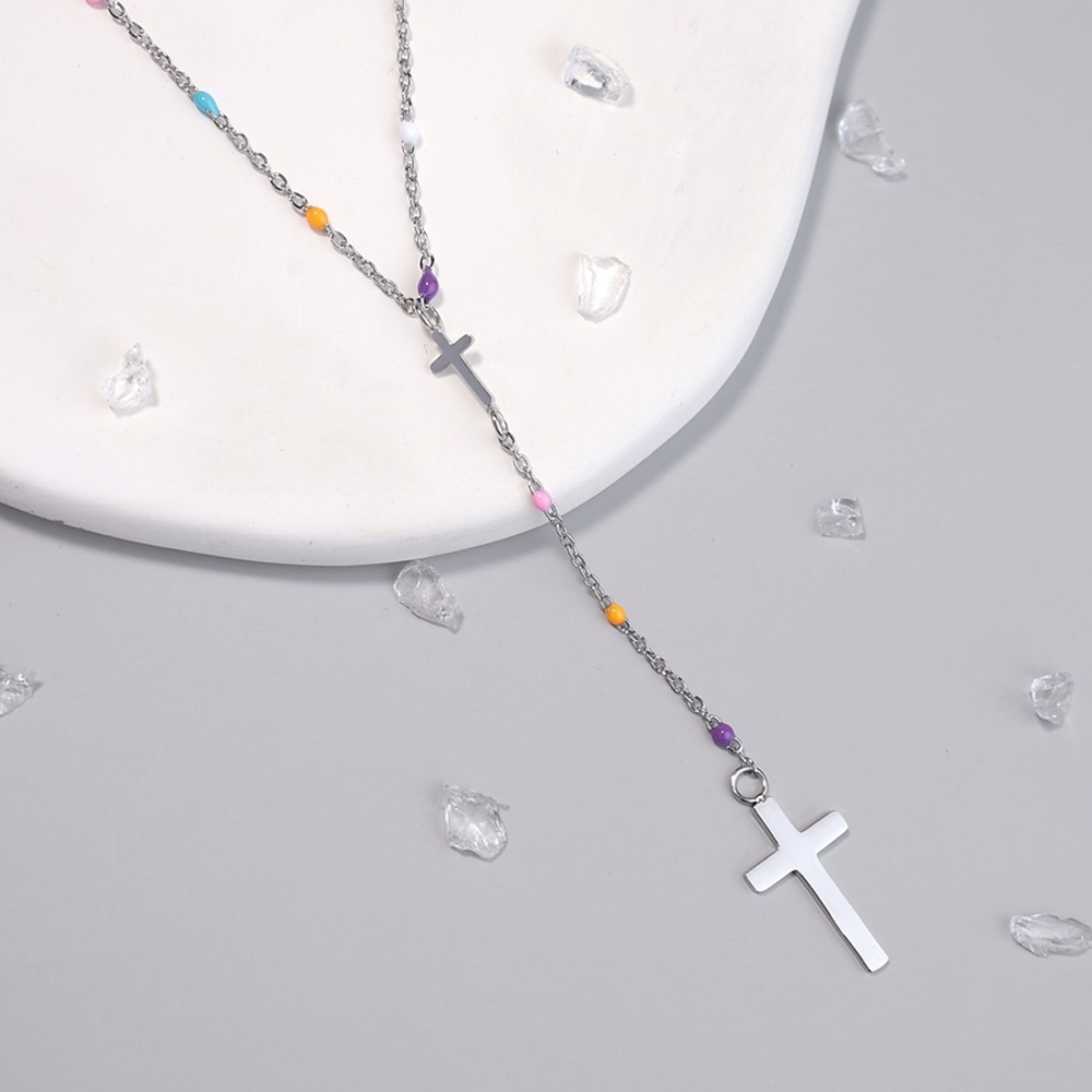 Тип изделия: Колье; Проба: Биж.сплав гальван.покр.; Цвет металла: Белый; Вставка: Ювелирная смола; Коллекция: Sale, Кресты, Цветные вставки; Размер: 45,0-50,0