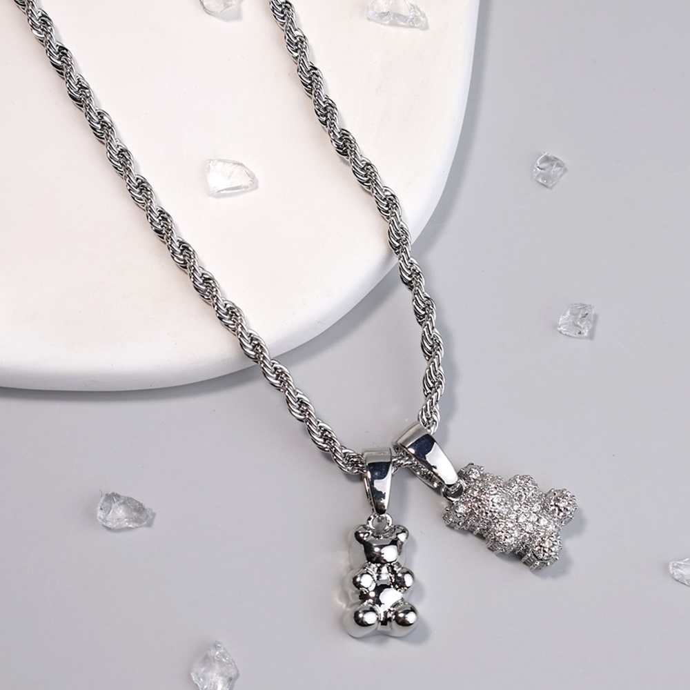 Тип изделия: Колье; Проба: Биж.сплав гальван.покр.; Цвет металла: Белый; Вставка: Кубический цирконий; Коллекция: Мишки; Размер: 50,0-55,0