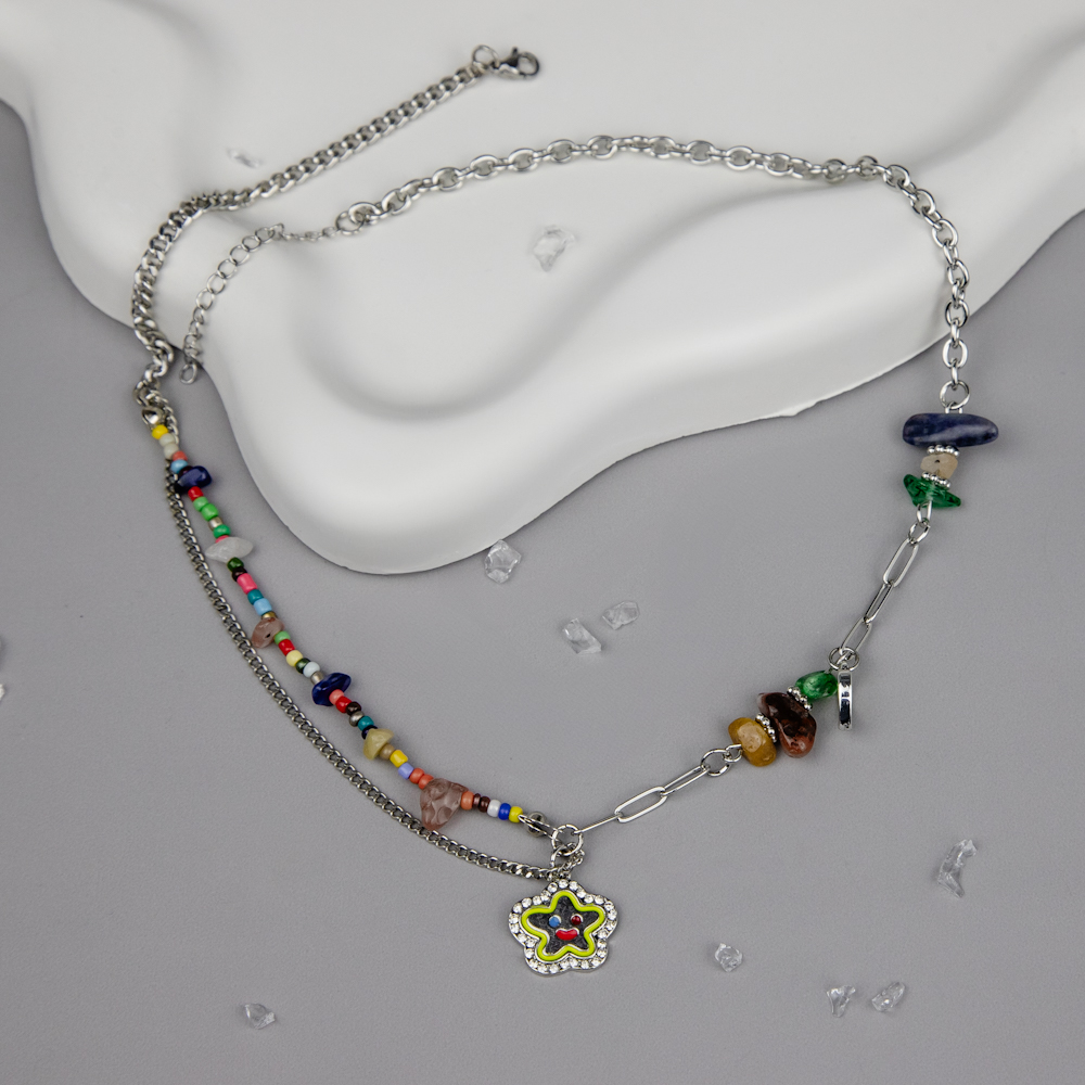 Тип изделия: Колье; Проба: Биж.сплав гальван.покр.; Цвет металла: Белый; Коллекция: Солнце Звезды Луна, Цветные вставки, Эмаль и перламутр; Вставка: Ювелирная смола, Кварц, Эмаль, Стразы; Размер: 45,0-50,0