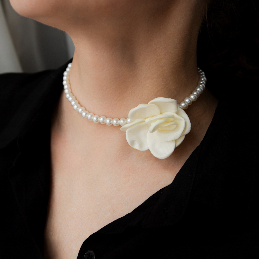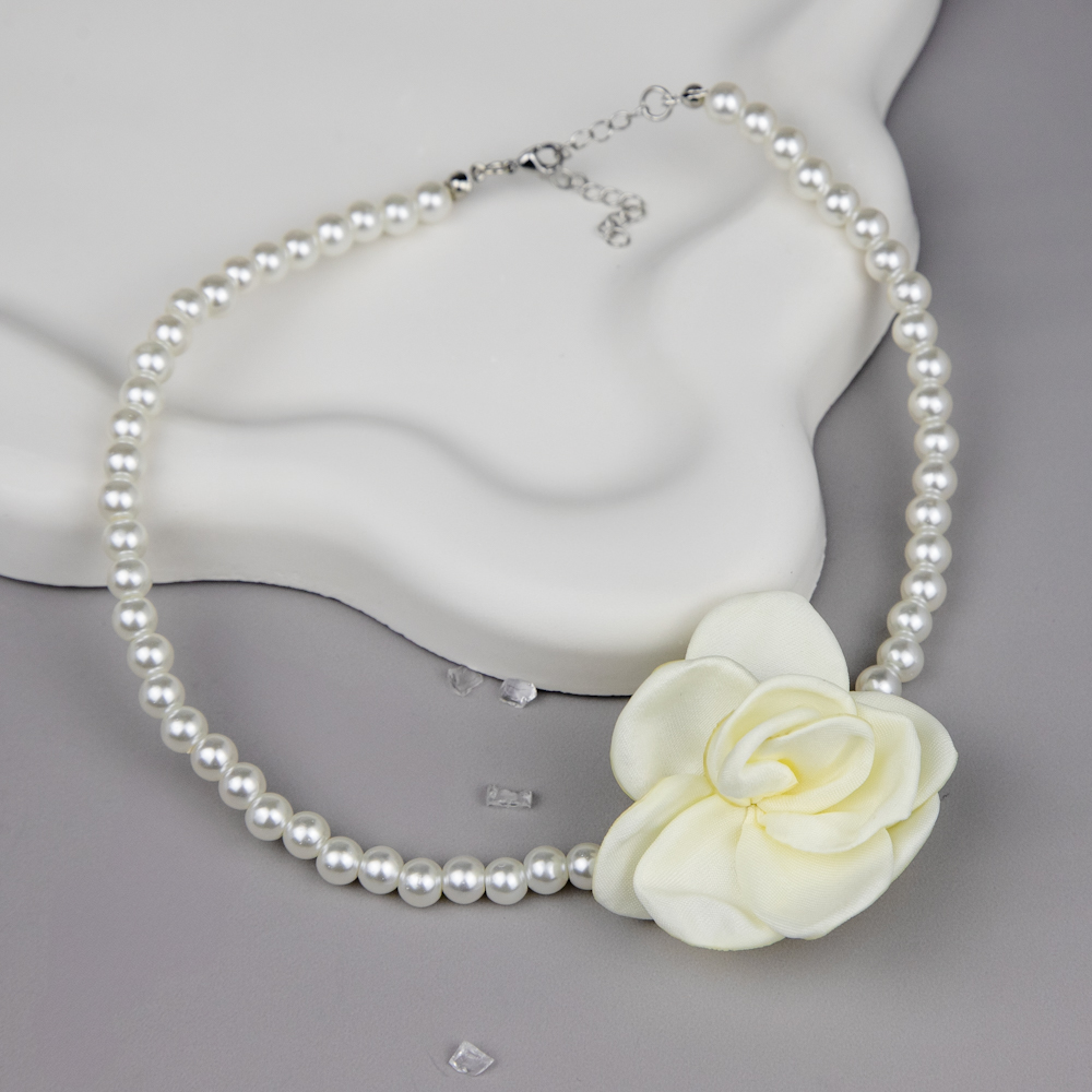 Тип изделия: Колье; Проба: Биж.сплав гальван.покр.; Цвет металла: Белый; Коллекция: Ботаника, Жемчуг, Чокер текстиль; Вставка: Жемчуг имитация, Текстиль; Размер: 35,0-40,0