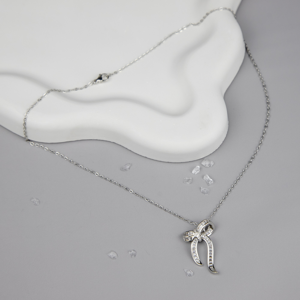 Тип изделия: Колье; Проба: Биж.сплав гальван.покр.; Цвет металла: Белый; Коллекция: Фианиты белые; Вставка: Кубический цирконий; Размер: 45,0